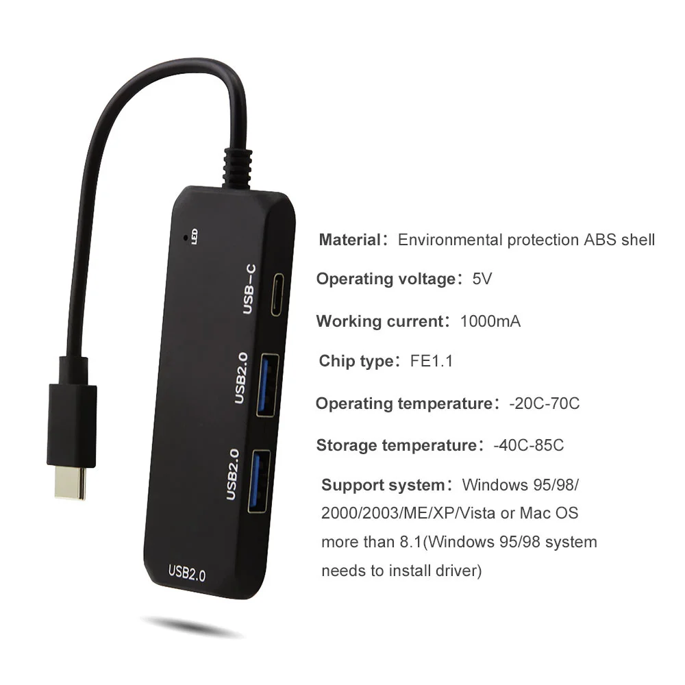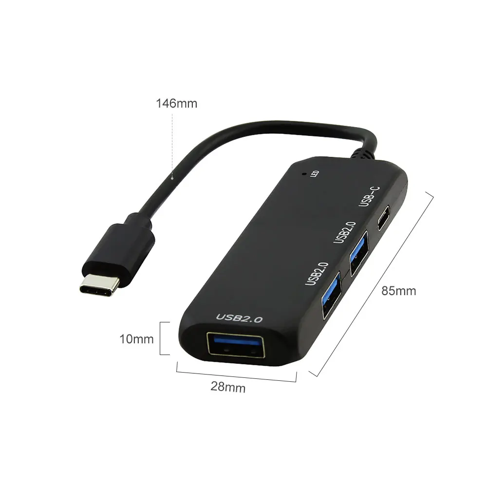 4 puertos USB-C a tipo C 3,1 bujes 2,0 puertos múltiples Hub portátil divisor USB Mini accesorios de computadora para computadora Macbook portátil