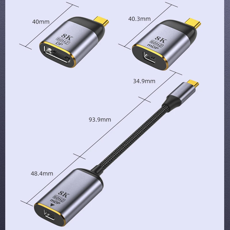 Cable USB C a DP/Mini DP 8K@60 Tipo C Display Port 1.4 Adaptador Thunderbolt 3 Convertidor 4K 60Hz Displayport para MacBook HDTV