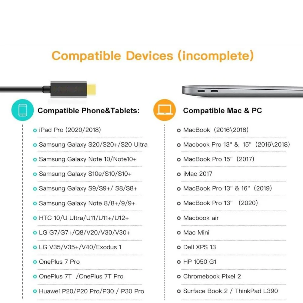 Los cables adaptadores de vídeo USB-C son compatibles con los últimos Apple MacBook Pro, MacBook Air, Mac Mini, Dell XPS 15/13.