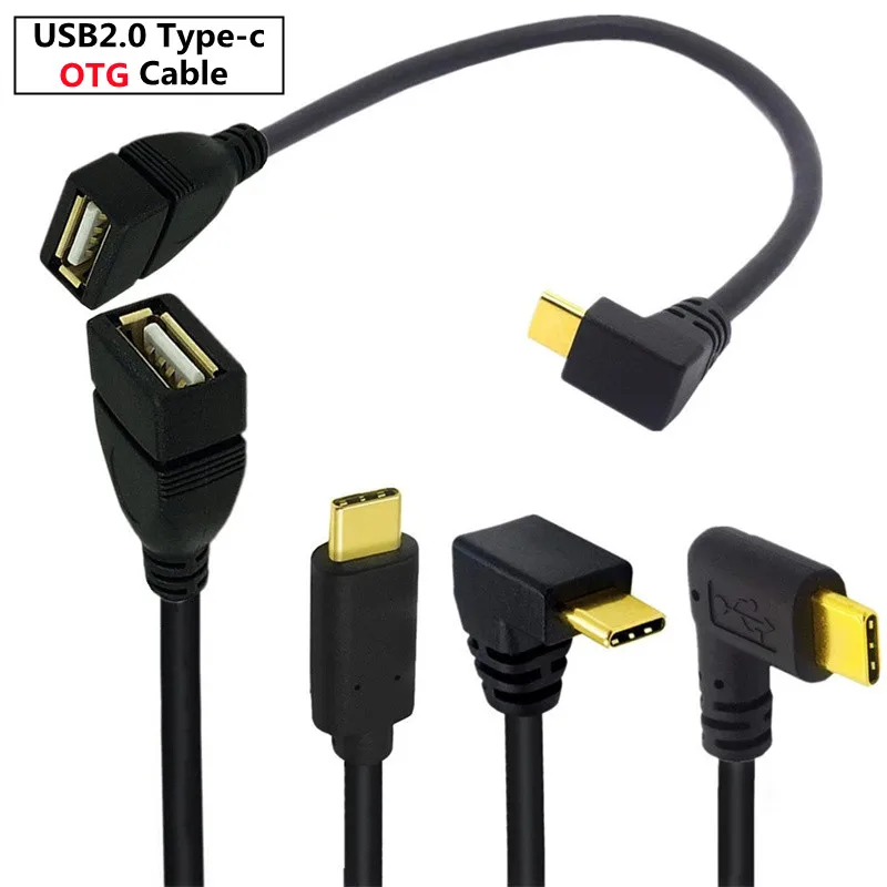 Comprar USB-C en forma de U USB 3,1 tipo C macho a USB 2,0 hembra, Cable de datos OTG, 25CM, 90 grados de ángulo
