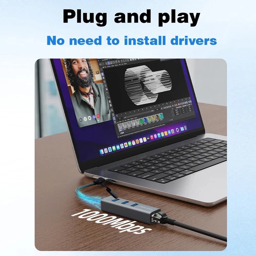 (1)Type C 4 in 1:3*USB 3.0+1*1000Mbps