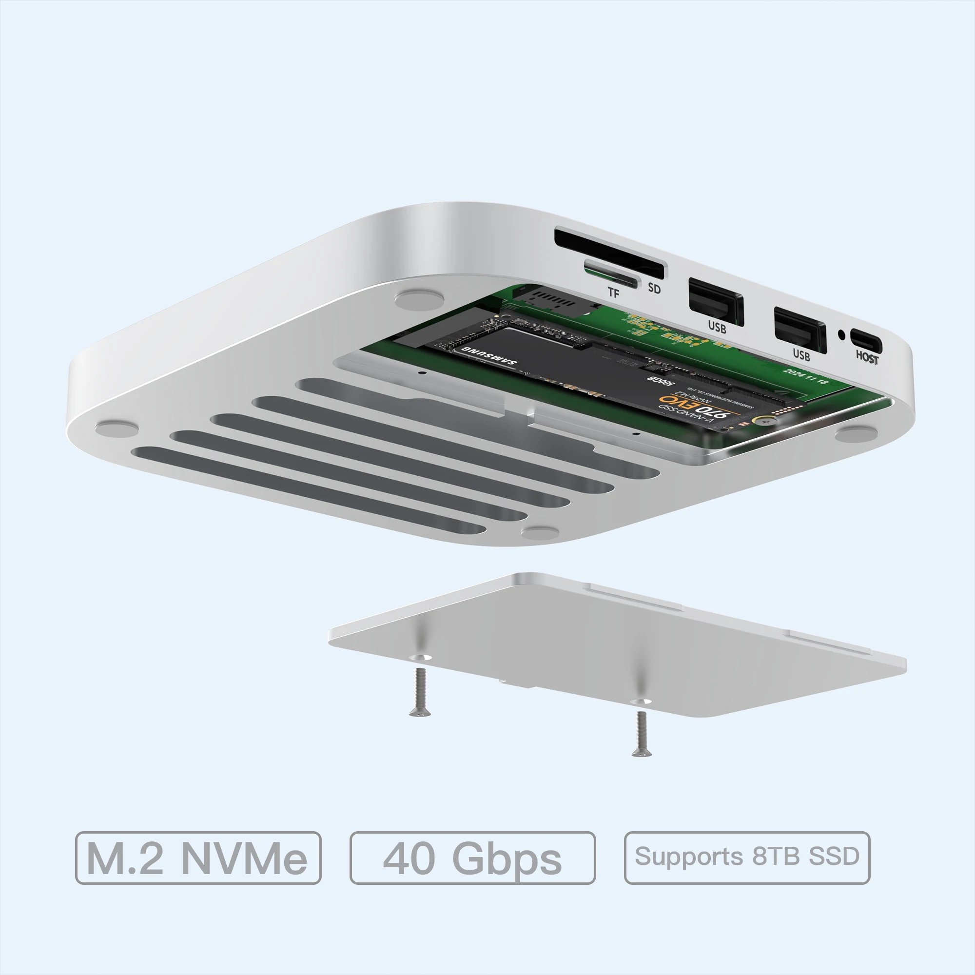 Comprar USB C Hub M.2 SSD caja tipo C USB4 40Gbps estación de acoplamiento para Mac mini M4/M4 Pro con expansión de Dock HUB SD/TF 2,0