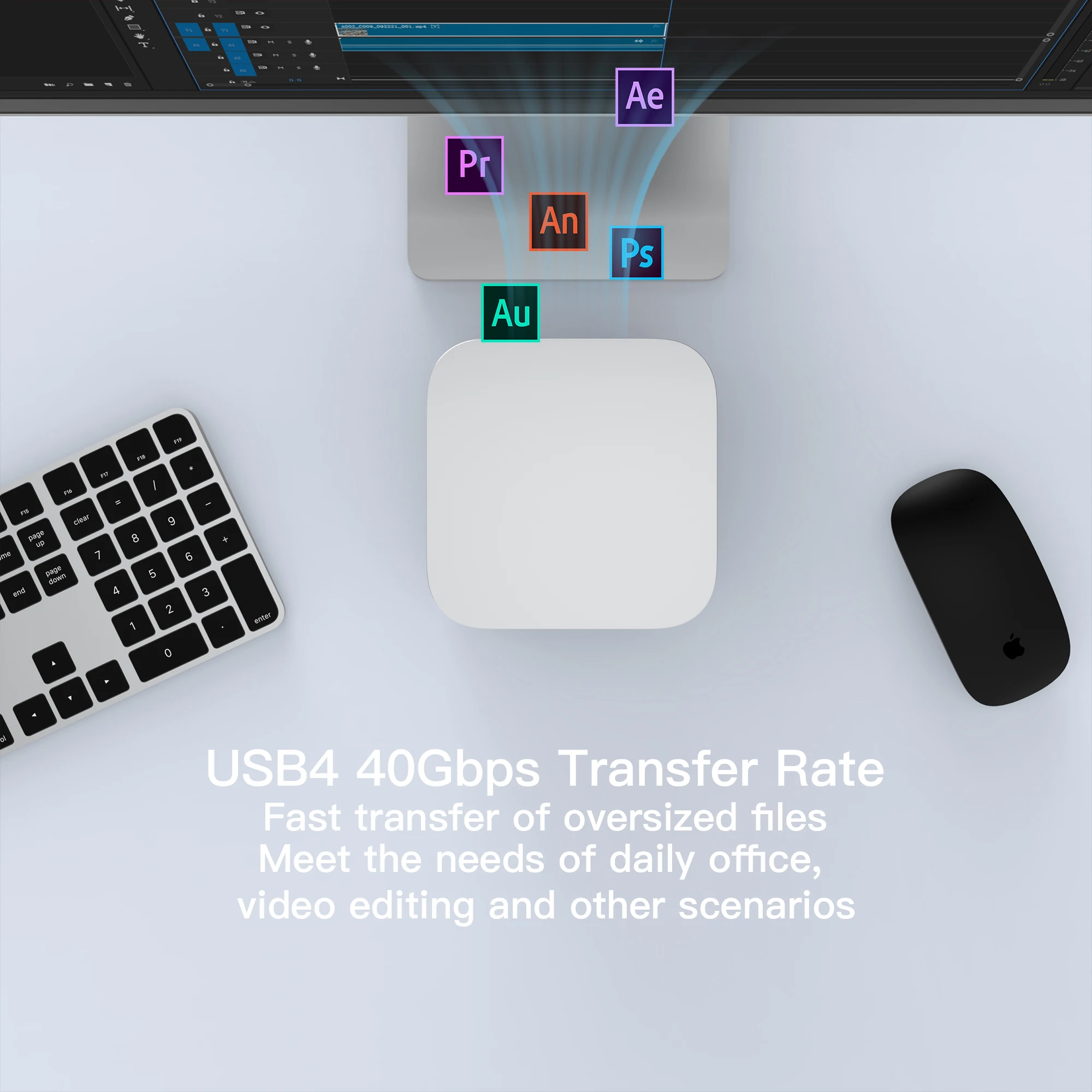 Velocidad de transferencia ultrarrápida de 40 Gbps: Equipada con tecnología USB 4.0, esta base ofrece velocidades de transferencia de datos ultrarrápidas de hasta 40 Gbps, ideal para transferencias de archivos, edición de vídeo y copias de seguridad perfectas.