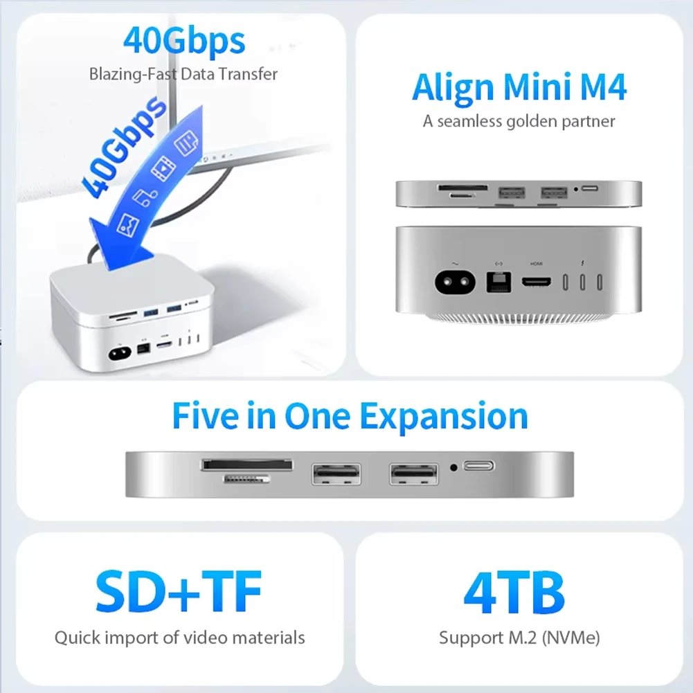 Comprar USB C Hub M.2 SSD caja tipo C USB4 40Gbps estación de acoplamiento para Mac mini M4/M4 Pro con expansión de Dock HUB SD/TF 2,0