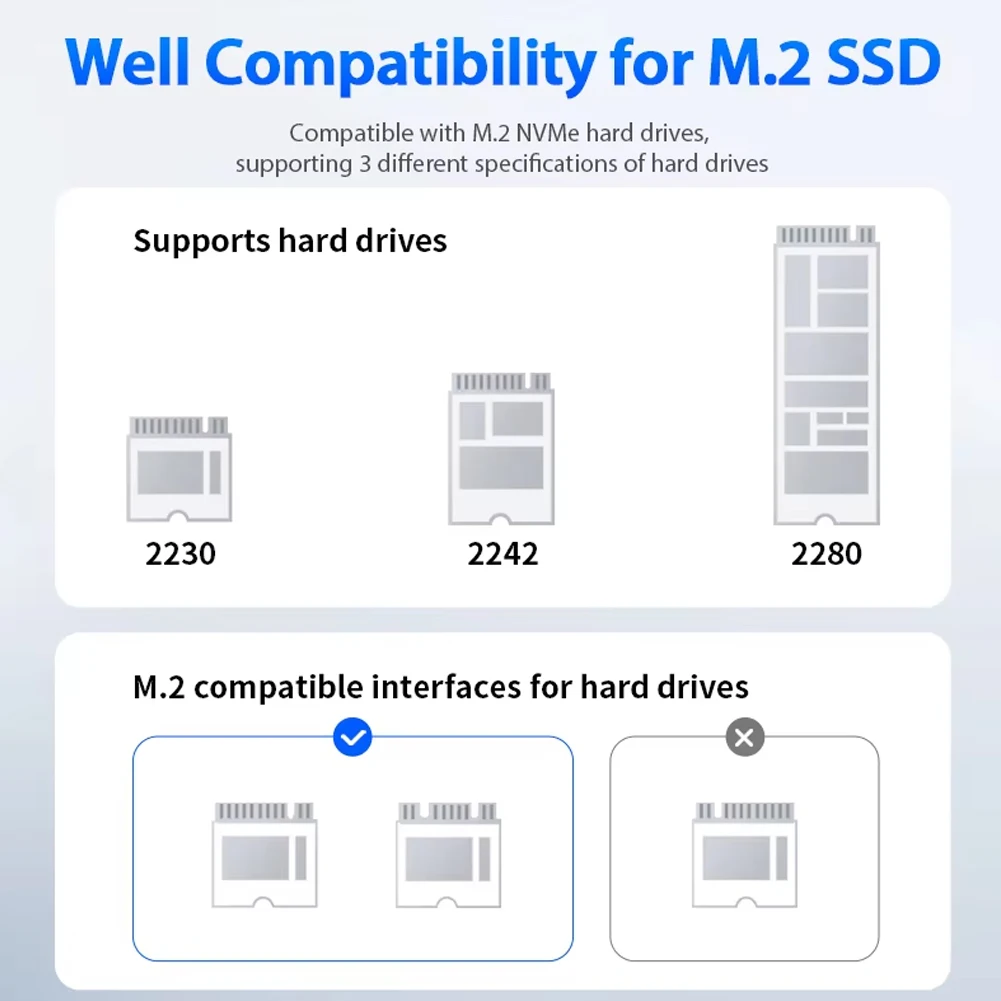 Configuración sencilla: ¡No se requiere experiencia técnica! Simplemente instale su SSD M.2, conecte la base y estará listo para comenzar.