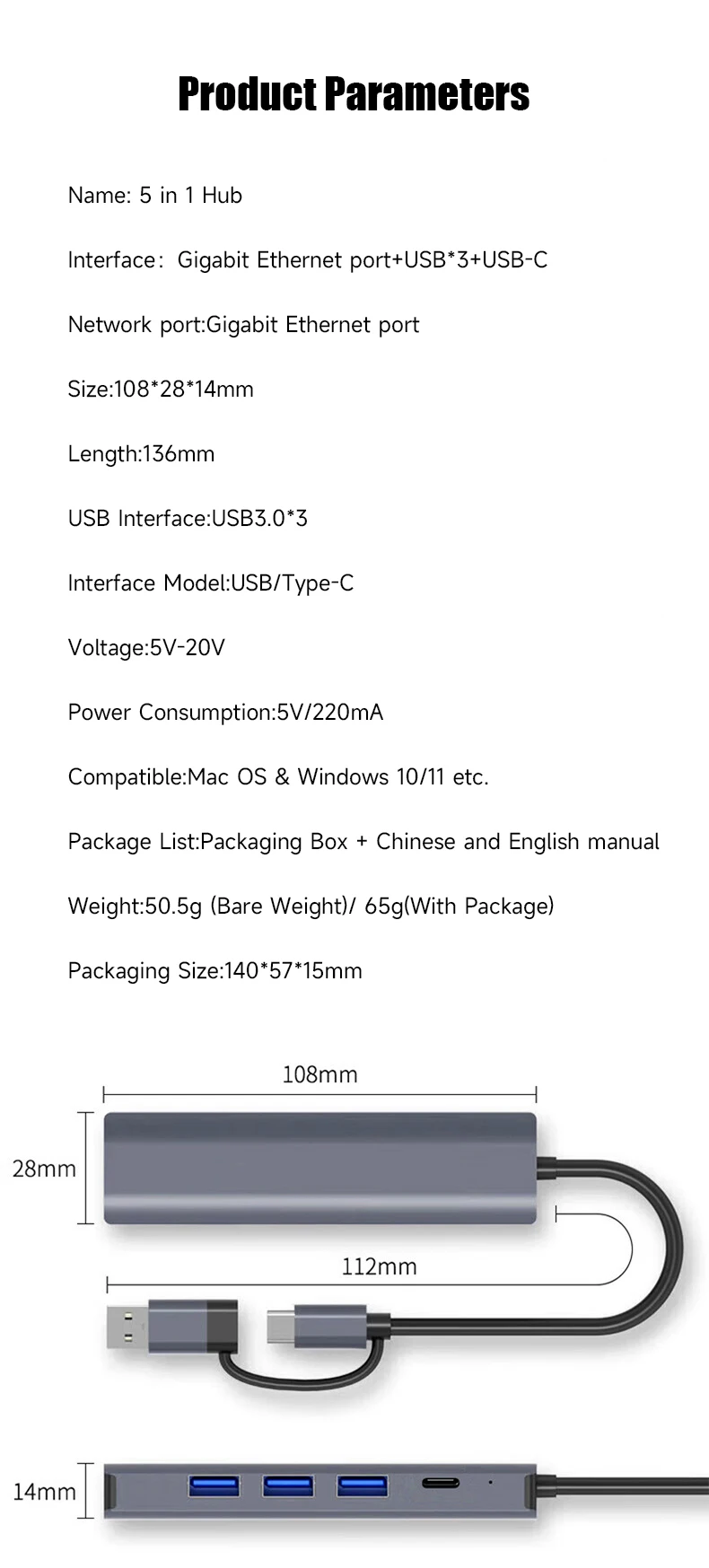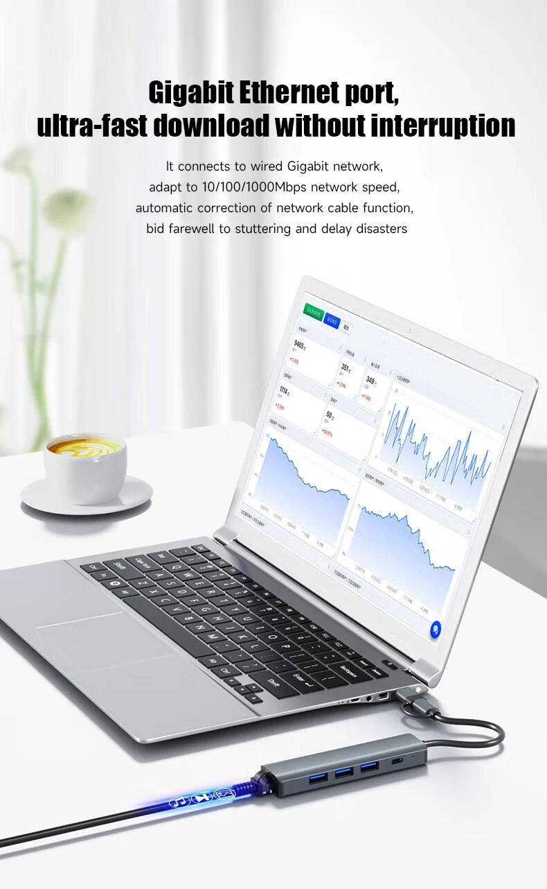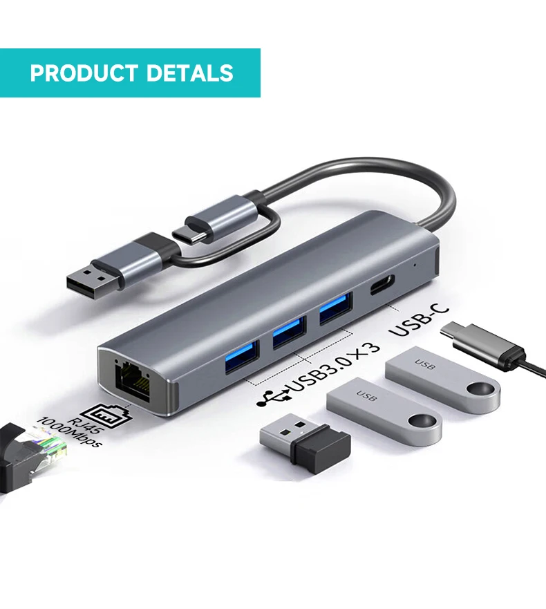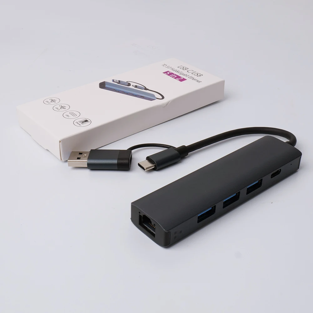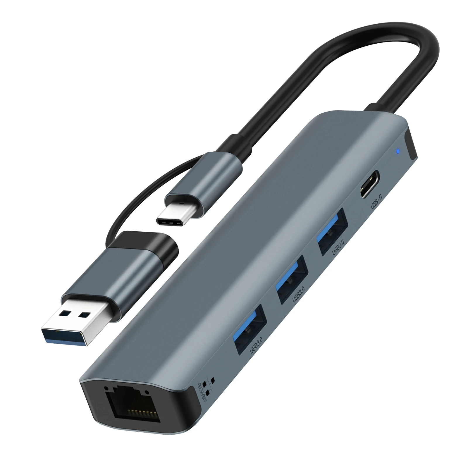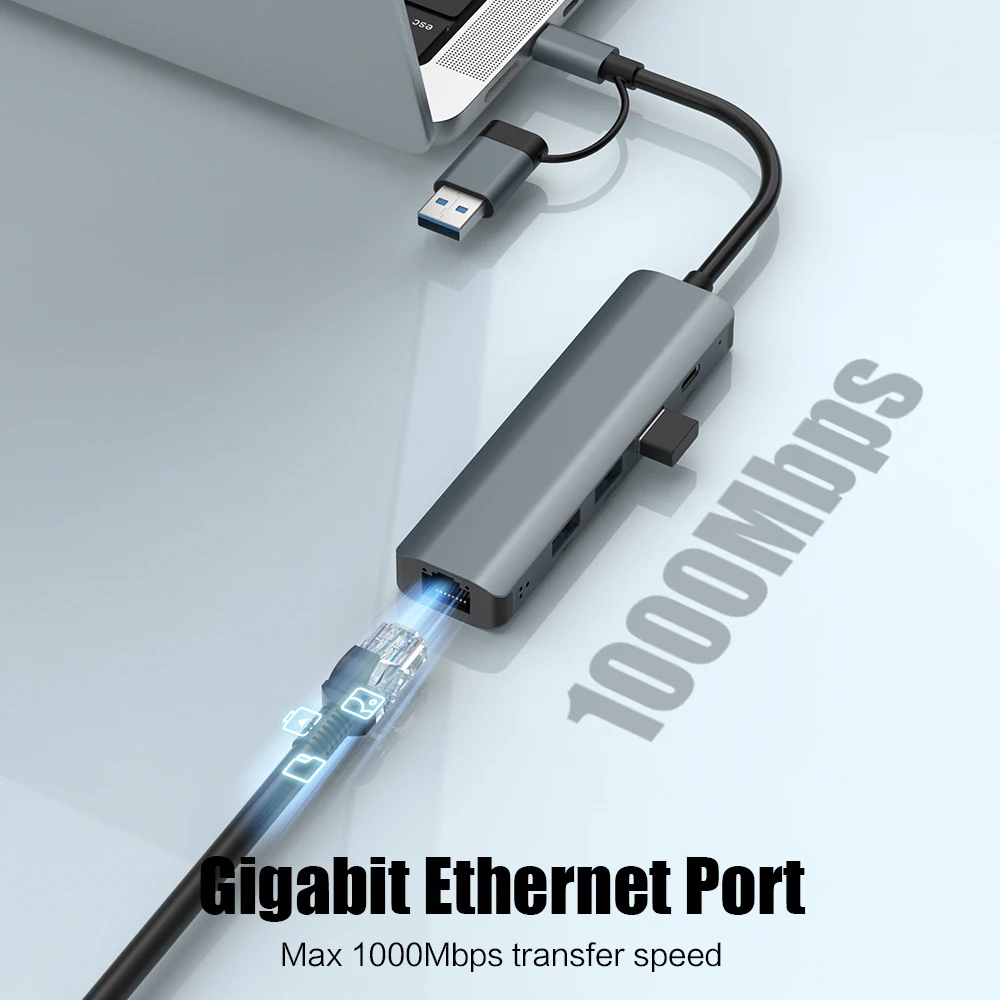 Comprar USB C HUB USB-C USB-A adaptador multipuerto tipo C USB 3,0 transferencia de datos Gigabit Ethernet RJ45 estación de acoplamiento para MacBook Pro