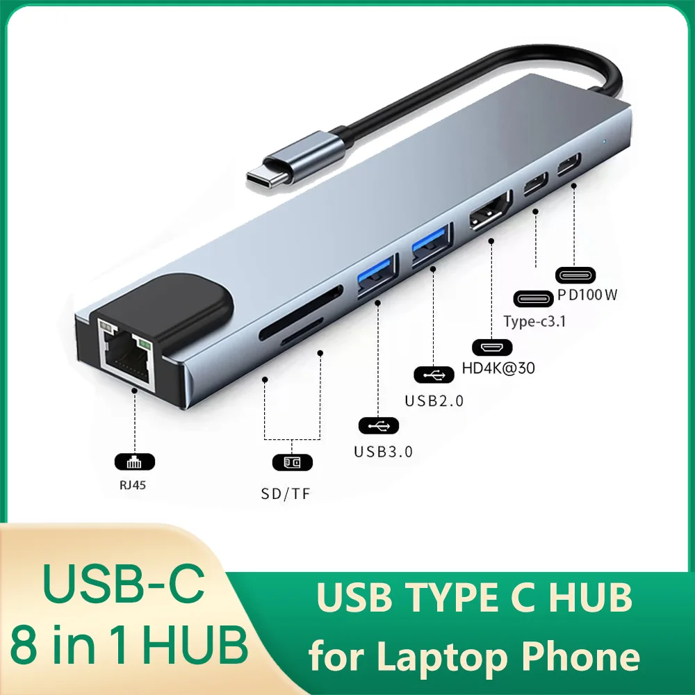 Comprar USB C tipo C 8 en 1 HUB con lector de tarjetas RJ45 SD/TF USB3.0 2,0 HD PD carga rápida para teléfono Dex modo de escritorio portátil