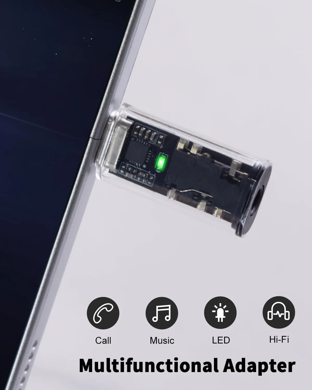 Adaptador de conector para auriculares hembra USB tipo C a 3,5 mm con luz indicadora de funcionamiento, potencia de salida: 40 mW/32 Ω, rango de respuesta de frecuencia: 20 Hz-20 kHz, admite llamadas telefónicas, comandos de voz, karaoke, transmisión en vivo, juegos y U- escudo.