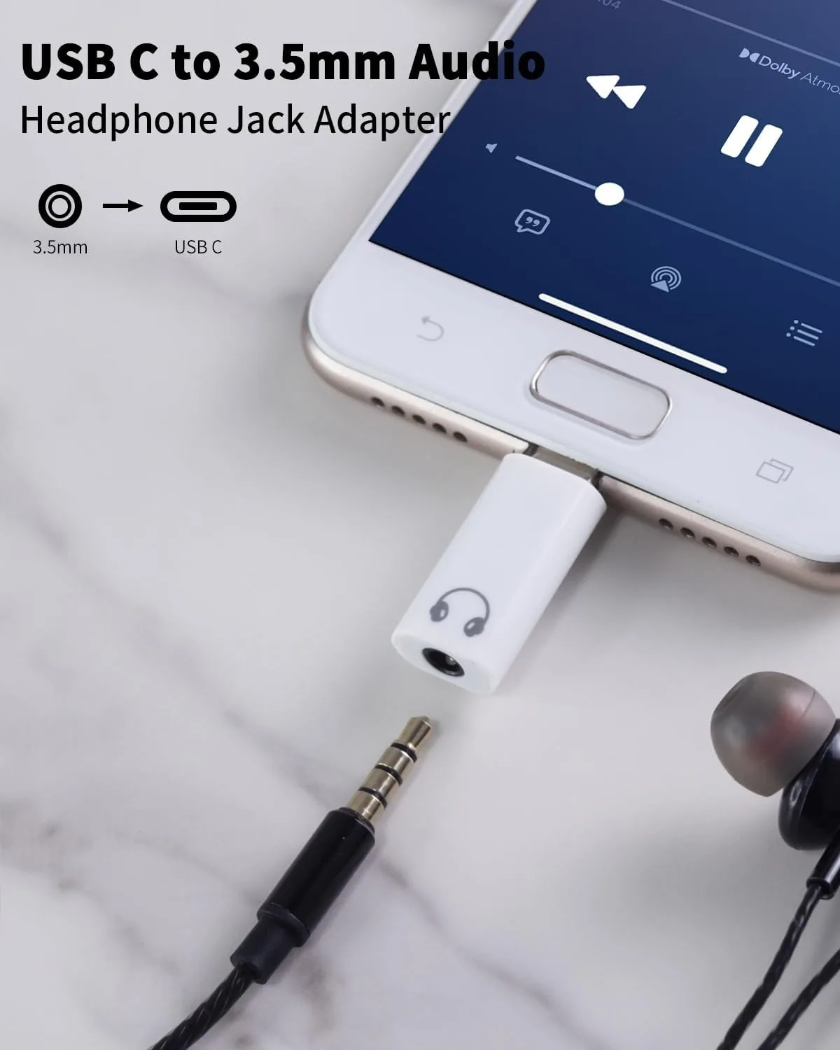 Adaptador USB-C a AUX: Compatible con la mayoría de los teléfonos tipo C como Phone 15, 15 Pro, 15 Plus, 15 Pro Max, Samsung Galaxy S24, S24+, S24 Ultra, S23, S23+, S23 Ultra, S22, S22+, S22 Ultra, S21+, S21 Ultra, S20 Ultra, S20 Z Flip, S20+, S10, S9, S8 Plus, Note 20, 10, 10+, 9, 8, Google Pixel 6, 5, 4, 2, XL, etc.