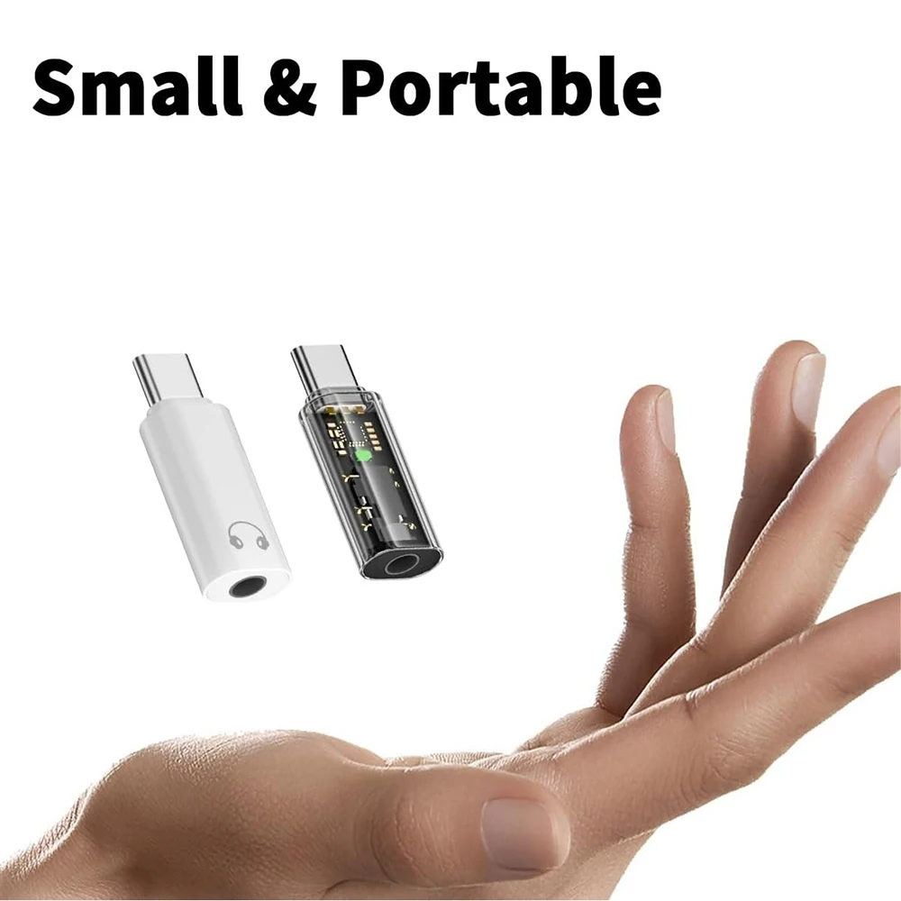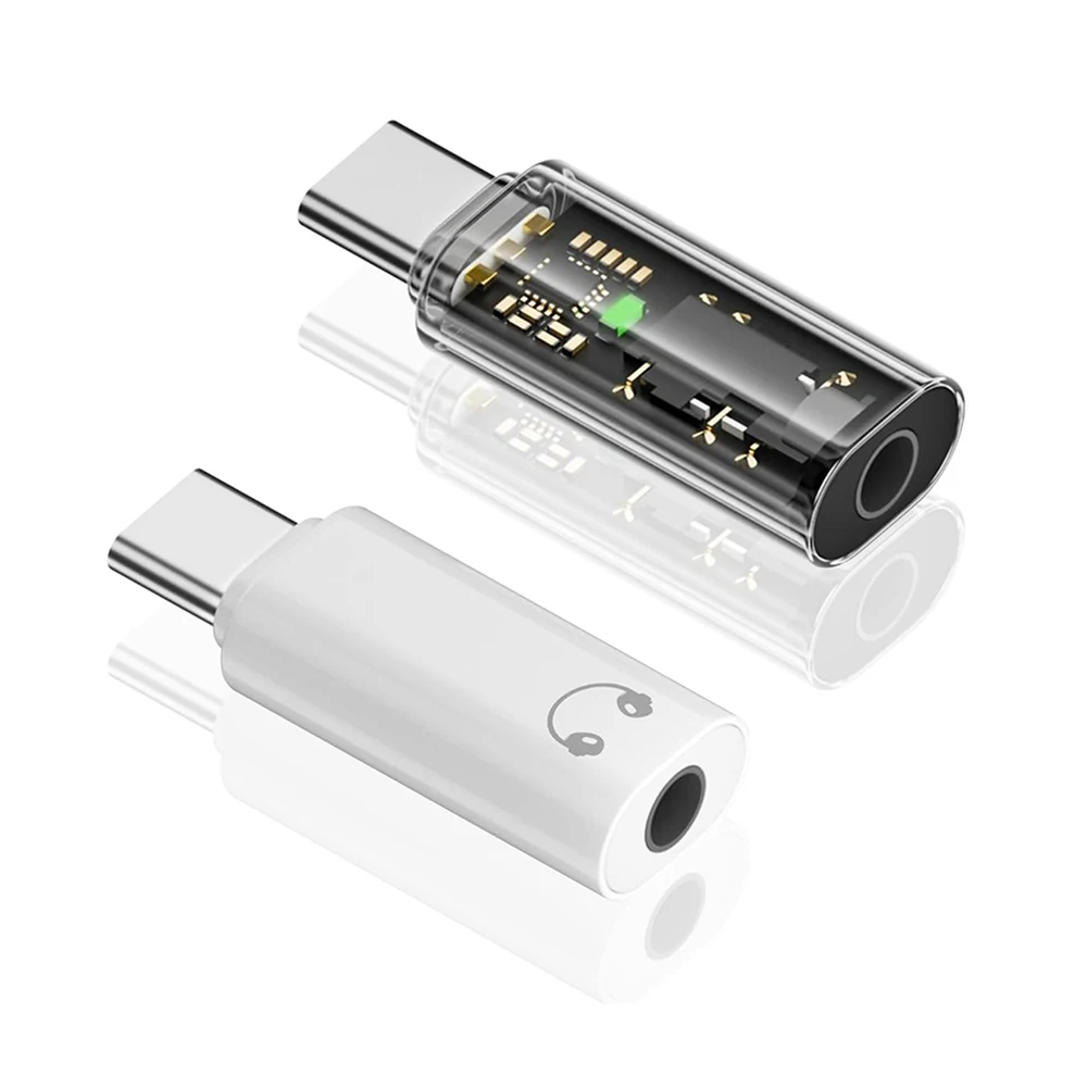Adaptador de conector para auriculares USB tipo C blanco o transparente a 3,5 mm: le permite usar auriculares para escuchar música y hacer llamadas telefónicas, admite la funcionalidad de control remoto e incluye una función de carga.