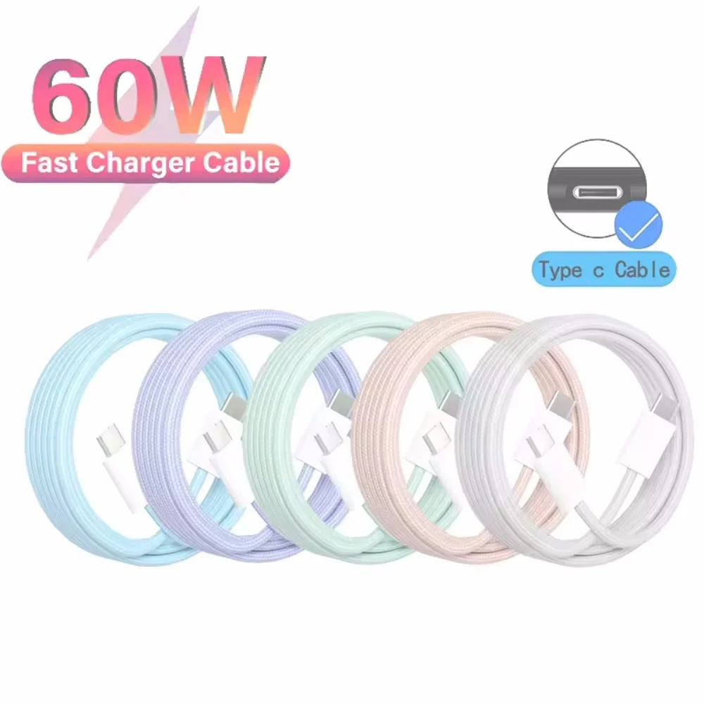 Comprar Usb C a tipo C carga rápida PD 60W teléfono móvil Cable de fecha trenzado para Iphone 15 Samsung Huawei Xiaomi Macbook iPad línea Android