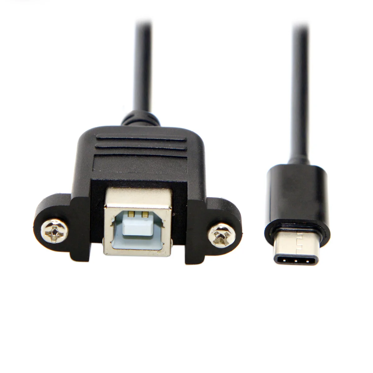 Comprar USB C tipo C macho a USB B hembra montaje en Panel de impresora con orificio para tornillo Cable de impresora tipo C con tornillos 20cm 1m 0,5 m