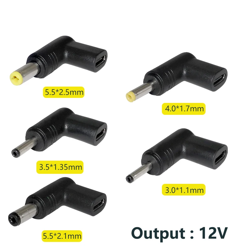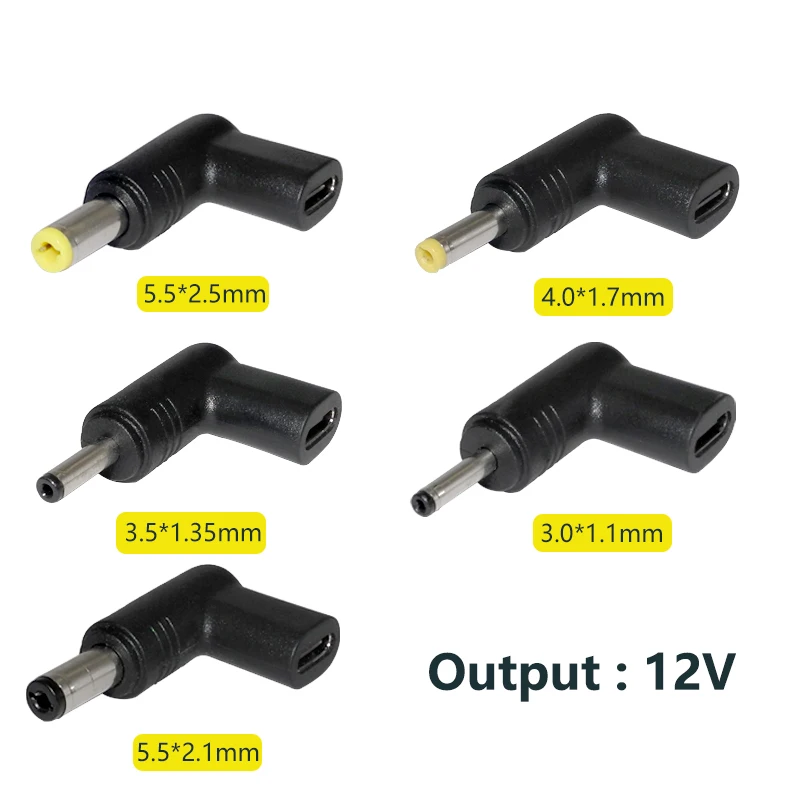 4 6 conectores de enchufe de CC con salida de 12V: 5,5x2,5mm/5,5x2,1mm/4,8x1,7mm/4,0x1,7mm/3,5x1,35mm/3,0x1,1mm. Fácil de usar, plug and play. (Nota: 1. Comprueba y confirma el tipo de interfaz que tus dispositivos necesitan cargar antes de realizar el pedido.