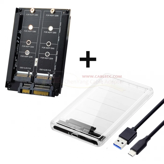 El paquete incluye una carcasa tipo C USB3.0 y un adaptador SATA a doble NGFF.