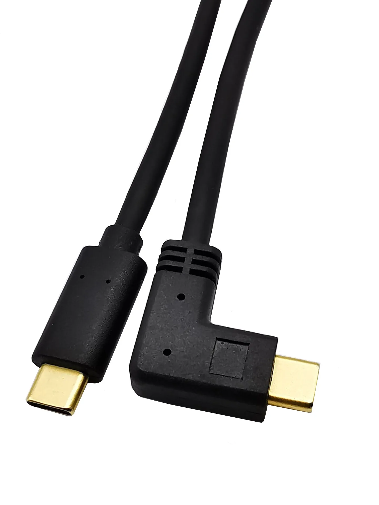 Ángulo de 90 ° chapado en oro tipo C a Cable tipo C (3A) macho a macho 1m;