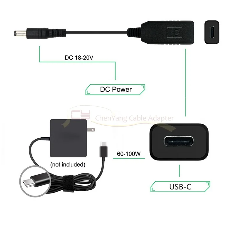 Comprar USB-C USB 3,1 tipo C a DC, 20V, 5,5, 2,5mm y 2,1mm, enchufe de alimentación, Cable de carga de gatillo emulador PD para ordenador portátil
