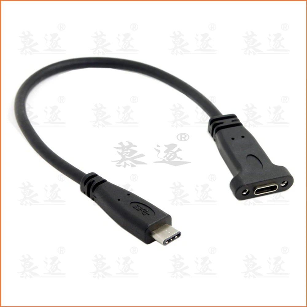 Cable de datos de extensión USB 3,1 tipo C macho a hembra con orificio de tornillo de montaje en panel Longitud: 20cm El conector tipo C es el nuevo diseño para USB 3,1 Nuevo tamaño más pequeño: similar a Tamaño de USB 2,0 Micro-B Diseño reversible para conector tipo C Orientación de enchufe reversible y dirección del cable Soporte de carga de energía escalable, datos USB, HDMI para Apple Macbook para Macbook Tablet y disco duro Conducir