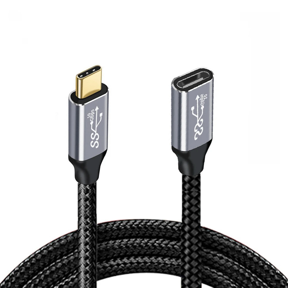 Comprar USB-C USB 3,1 tipo C, Cable de datos de extensión macho a hembra, 10Gbps, 100W, con funda para ordenador portátil y teléfono