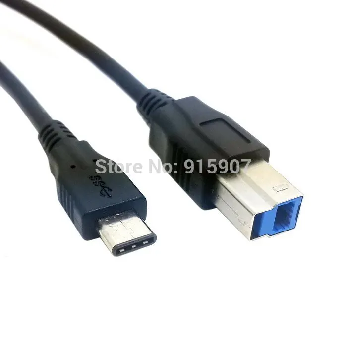 Conector macho USB 3,1 tipo C a cable de datos macho B estándar USB para Mac Book y portátil negro