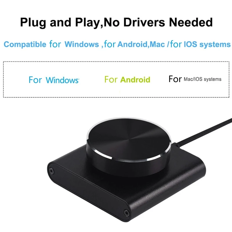 Características: Nuevo y de alta calidad Carcasa metálica de aluminio. Aleación de aluminio mate antihuellas, botón giratorio antideslizante de un botón, tacto más cómodo y resistencia a los arañazos que la cubierta de plástico. USB plug and play. Botón de arco giratorio de 360 grados, fácil de usar (ajuste de volumen, silencio, arriba y abajo, pausa) y evita la incomodidad causada por los bordes afilados. Alfombrilla antideslizante. Hay una almohadilla suave en la parte inferior, que es estable y antideslizante durante el uso. Calidad de audio sin pérdidas. Ajuste la fuente de audio directamente sin afectar la calidad del audio. Viene con un cable USB de aproximadamente 1,87 M/7,2 pies de largo, adecuado para usar con escritorio o computadora portátil. Amplia compatibilidad. Compatible con el sistema operativo WIN 7/8/10/XP, VISTA, Android, iOS (los teléfonos móviles necesitan un cable adaptador de bus serie universal adecuado).