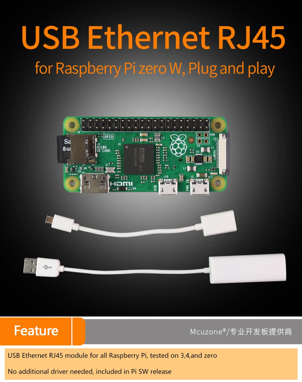 USB Ethernet RJ45 para Raspberry Pi zero W, Plug and play