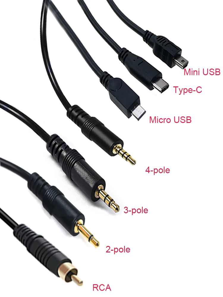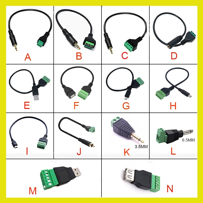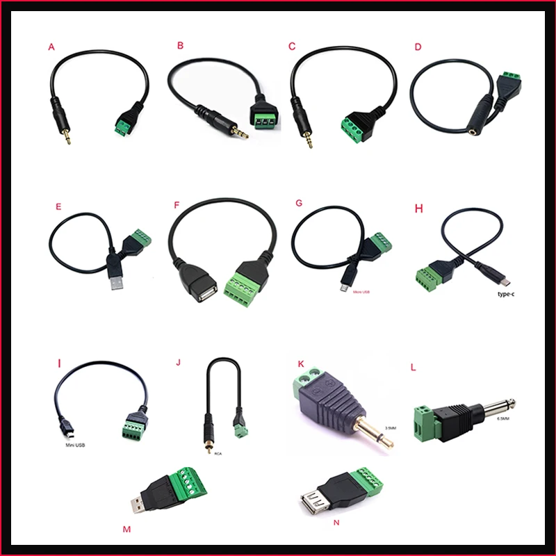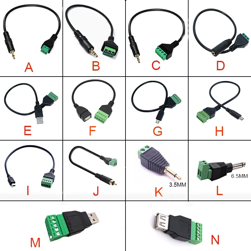 USB hembra Mini USB tipo C RCA macho a hembra Terminal de tornillo Conector de clavija estéreo Cable adaptador 3,5 mm 6,5 mm Post