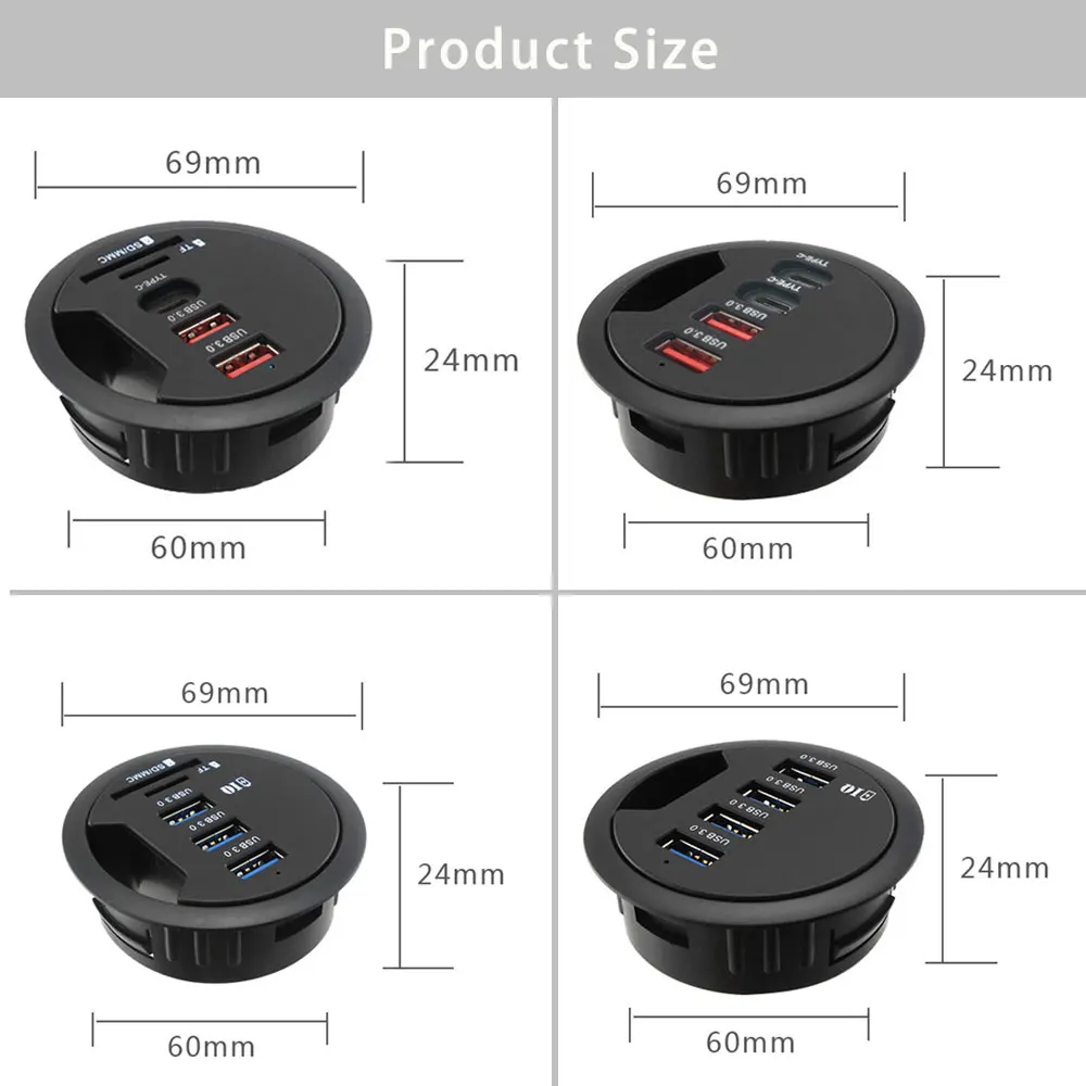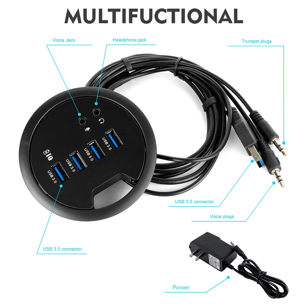 Comprar USB HUB USB3.0 montaje en escritorio puertos Multi USB 2,0 con SD/TF auriculares/micrófonos tipo C puerto Usb Hub con adaptador de corriente 5V 2A