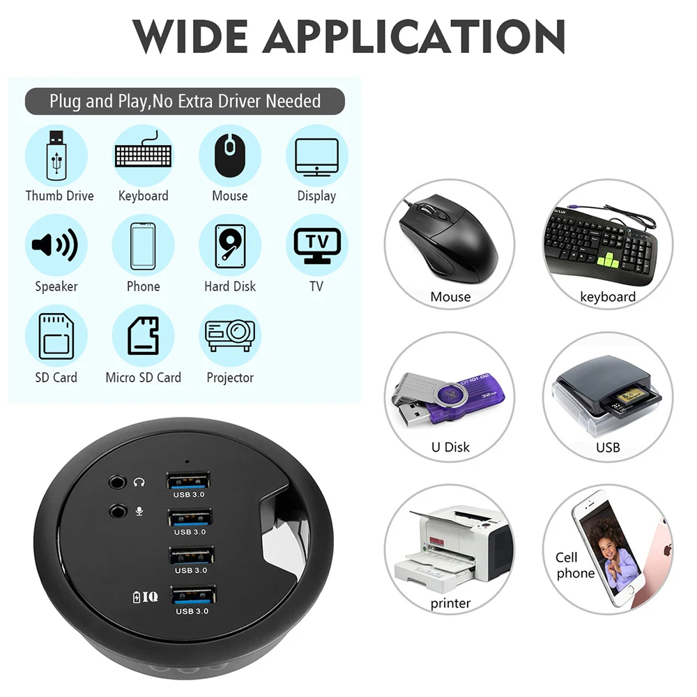 3. Extienda la interfaz USB desde el chasis al escritorio, para que pueda conectar cualquier dispositivo USB en el escritorio y cargar iPad/tableta/teléfonos inteligentes. (El HUB USB2.0 no admite carga)