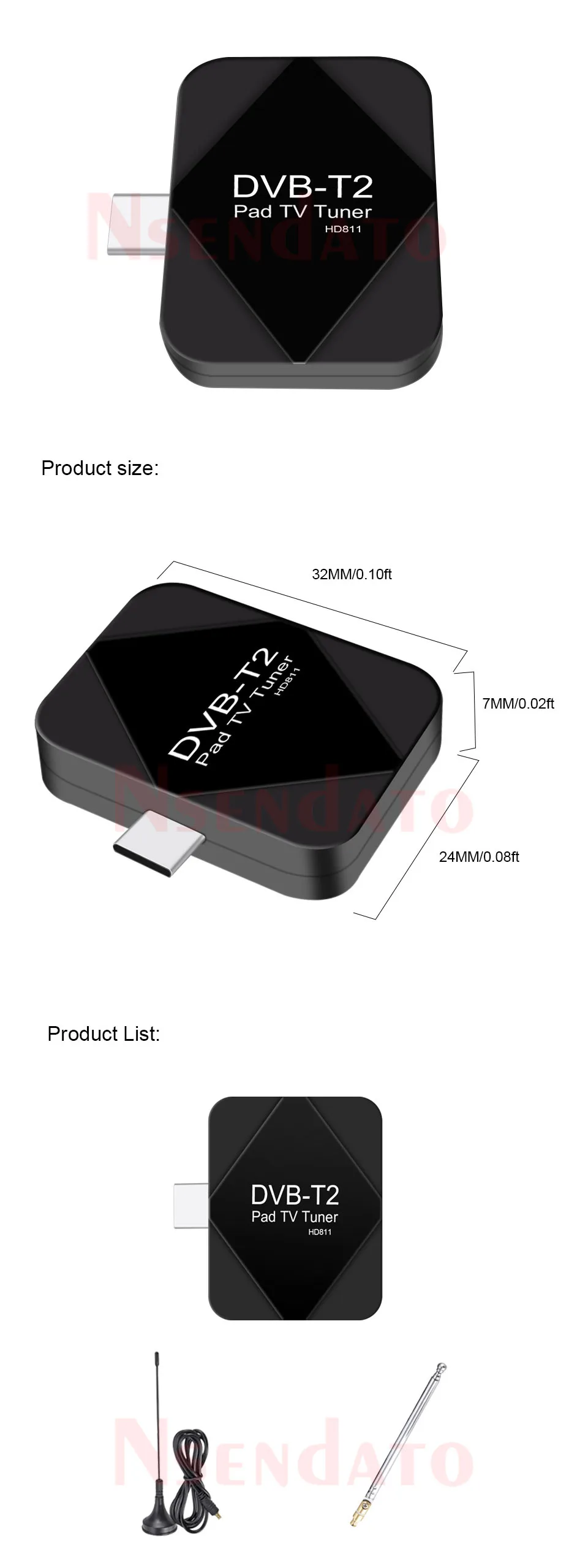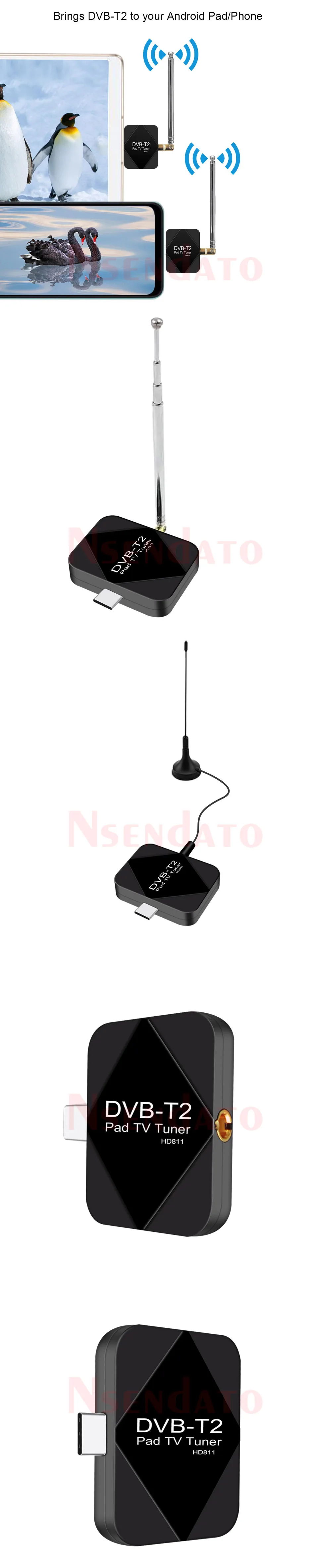USB tipo C DVB T2 DVBT2 Pad sintonizador de TV móvil receptor tipo C DVB-T2 Pad sintonizador de TV con antena para teléfono inteligente Android