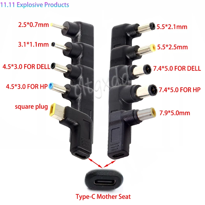 Comprar USB tipo C hembra a cuadrado 3,0x1,1mm 4,5*3,0mm 5,5x2,5mm DC macho adaptador de corriente para ordenador portátil para Lenovo HP Asus Dell Cable conector