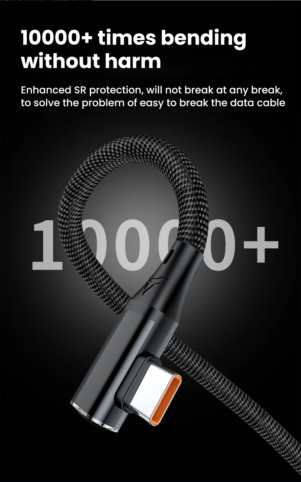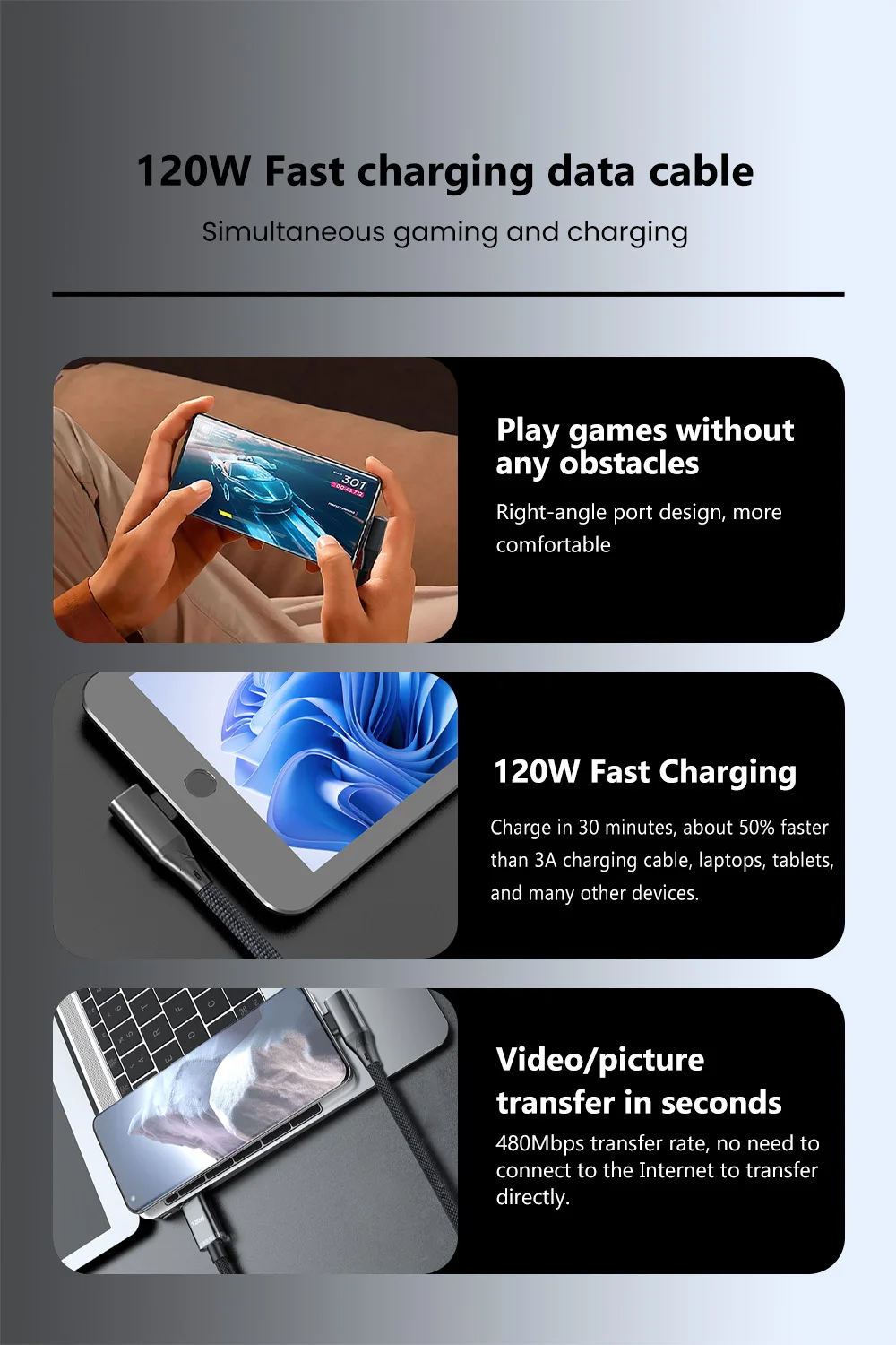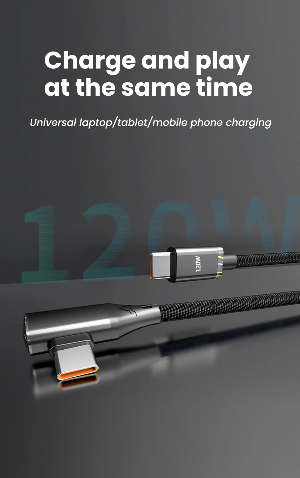 USB a tipo C PD120W 90 ° Cable de carga rápida tipo c a cable de cristal tipo c para iPhone 16 15 Samsung Xiaomi Cable de carga