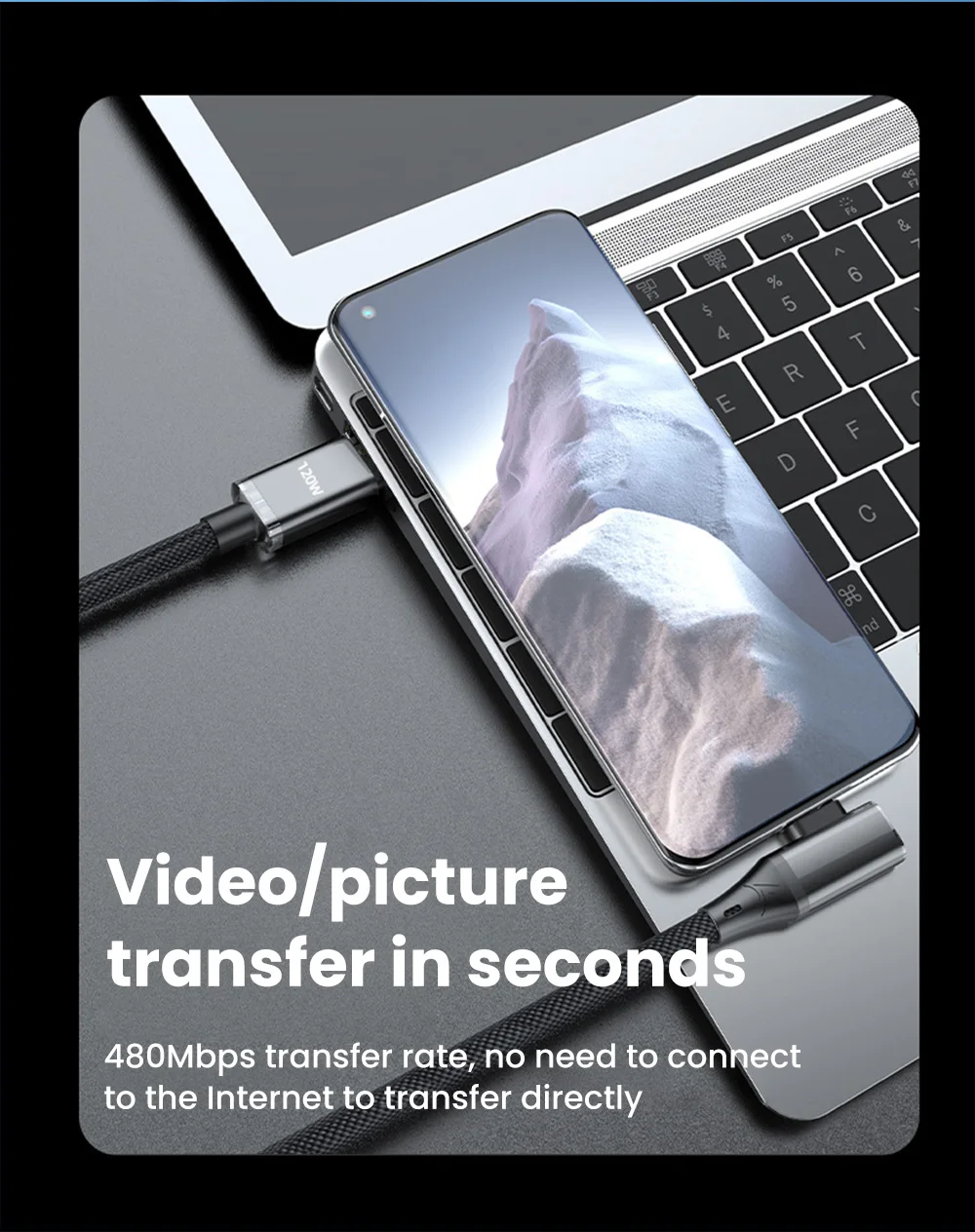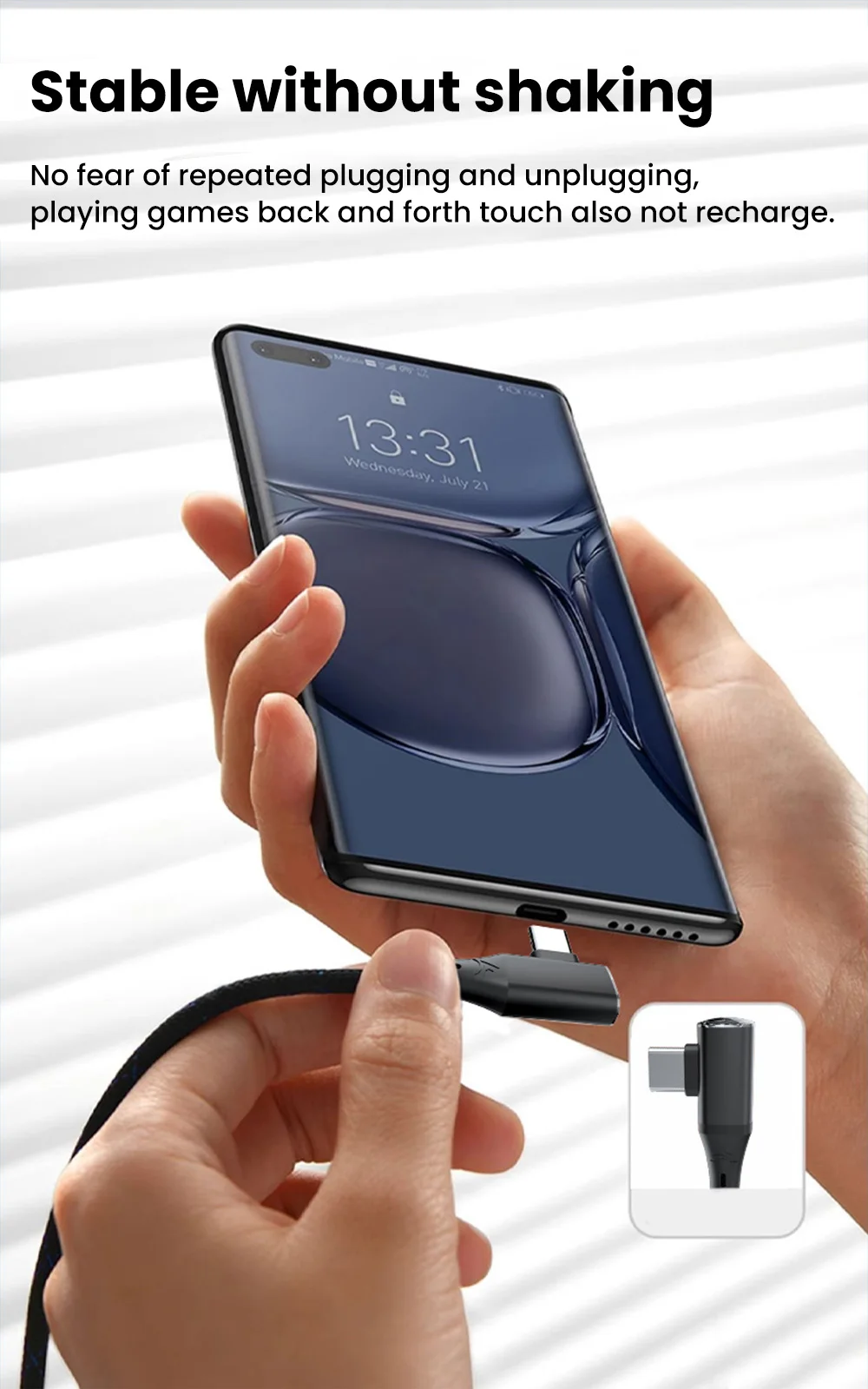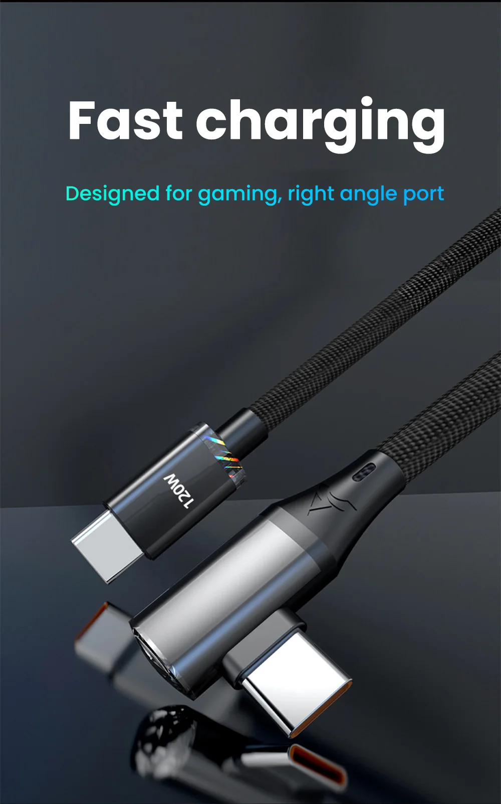 USB a tipo C PD120W 90 ° Cable de carga rápida tipo c a cable de cristal tipo c para iPhone 16 15 Samsung Xiaomi Cable de carga