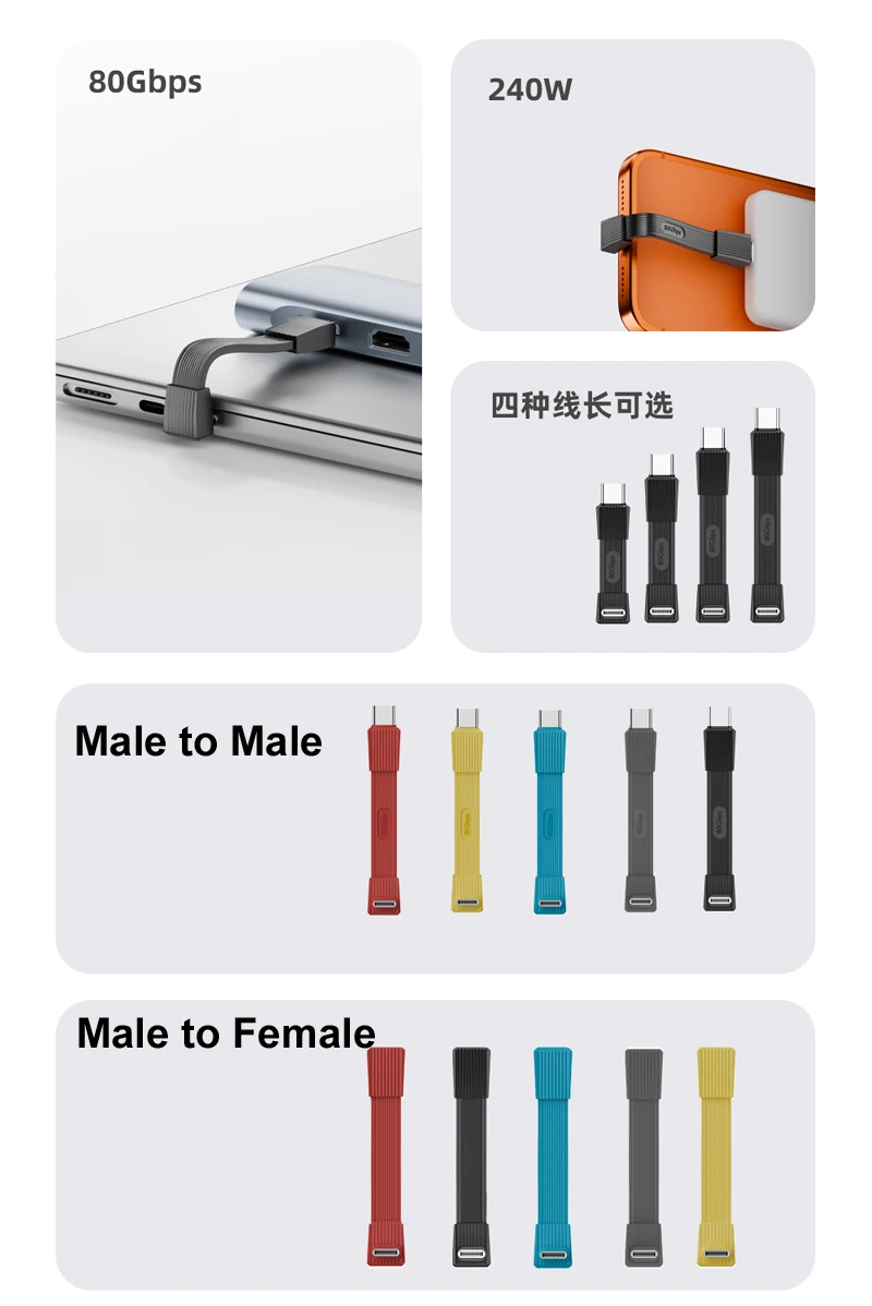 USB TYPE-C 67CM/51CM macho/hembra 8K@60Hz PD 3.1 240W 48V 5A disco duro móvil 80GBPS transmisión de DATOS Thunderbolt 3/4/5 Cable de Audio y vídeo Disolayport para teléfono PC portátil banco de energía
