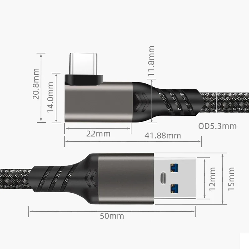 USB A a USB C 10Gbps 5m 3M Cable 3A USB3.2 Gen1 Carga rápida para Oculus Quest Link VR Auriculares Transferencia DE DATOS Accesorio de realidad virtual de la USB-A