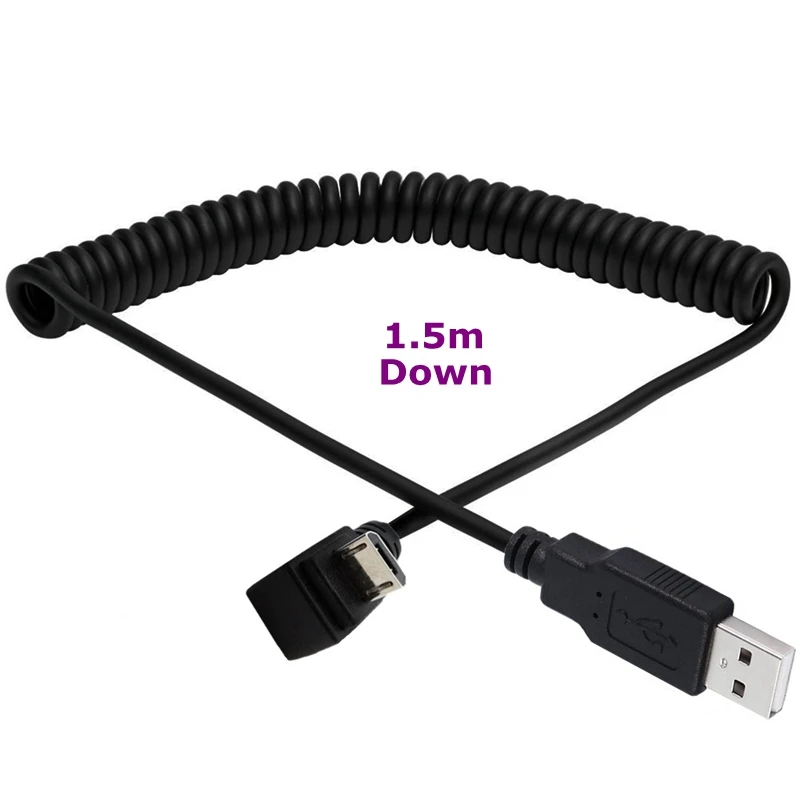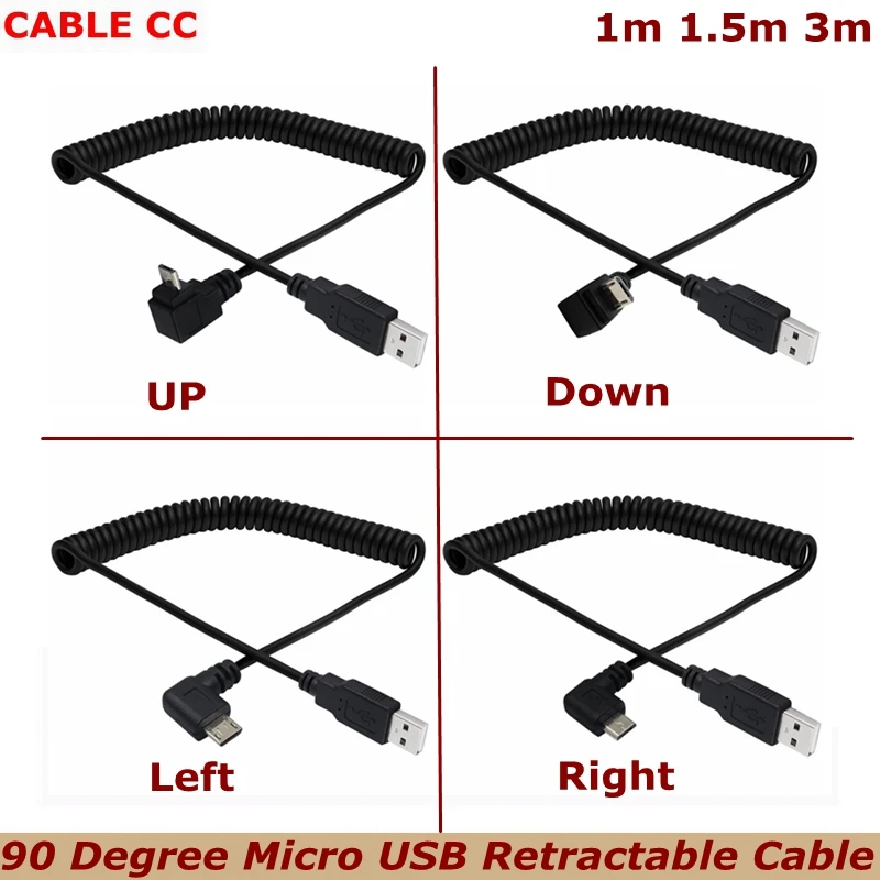 Comprar USB2.0 a Micro USB arriba, abajo, izquierdo y derecho codos Android Cable de extensión de datos de carga grabadora de coche Cable de resorte retráctil