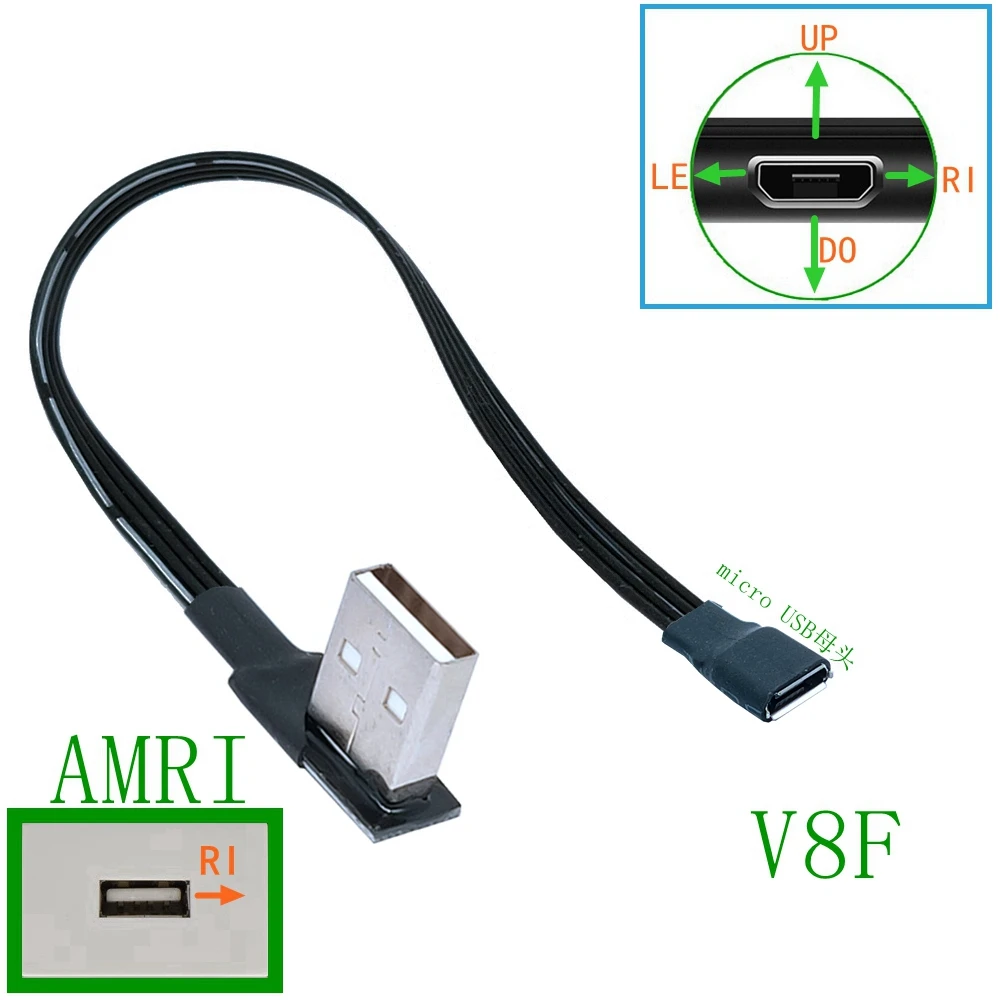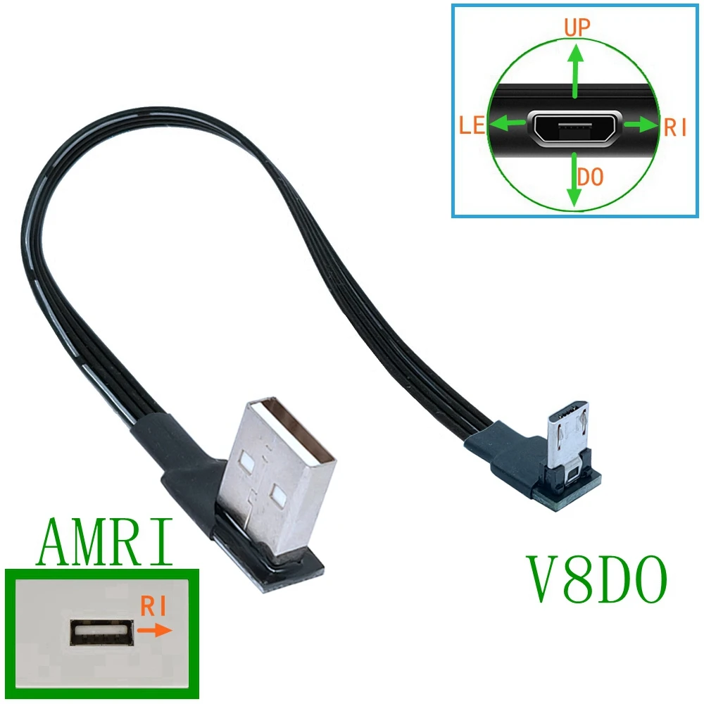 Comprar USB2.0 en ángulo recto, giro izquierdo, micro USB, 90 grados, micro USB en ángulo izquierdo, conector USB, cable corto de 10cm, 20CM, 30CM, 50CM