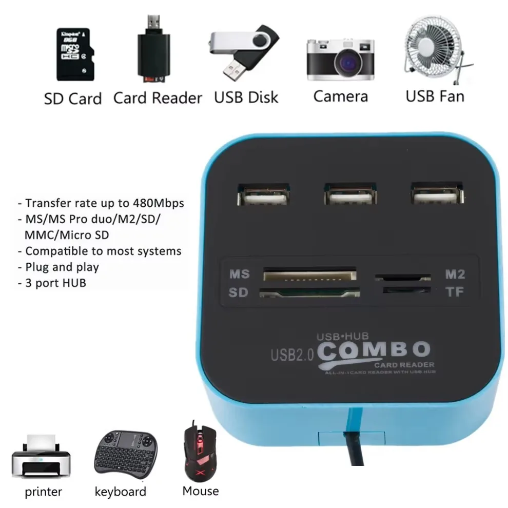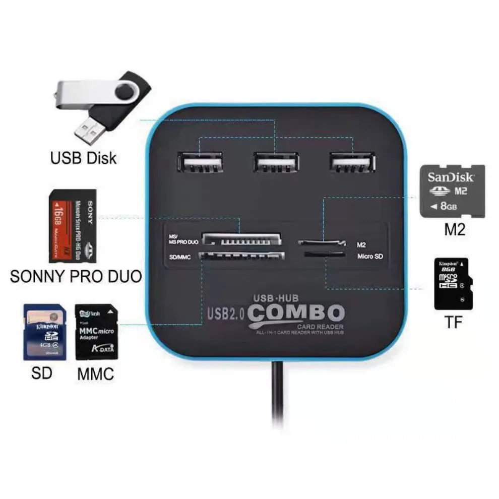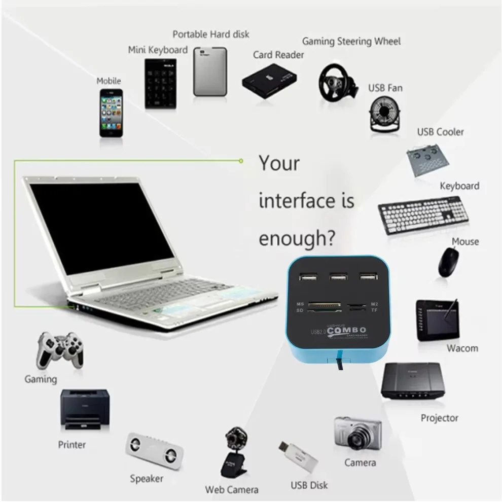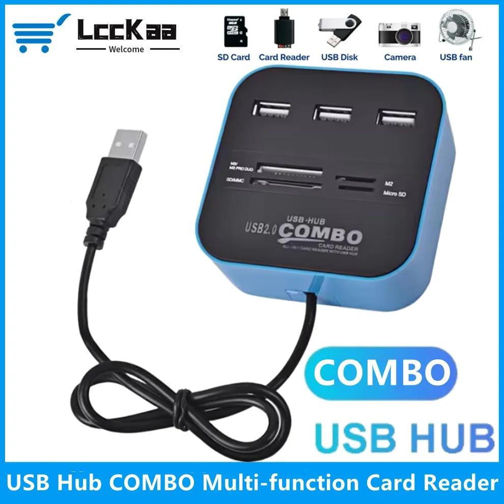 Comprar USB2.0 Hub USB Hub Combo lector de tarjetas lector de tarjetas todo en 1 con concentrador USB lector de tarjetas Micro SD adaptador USB de 3 puertos para PC portátil