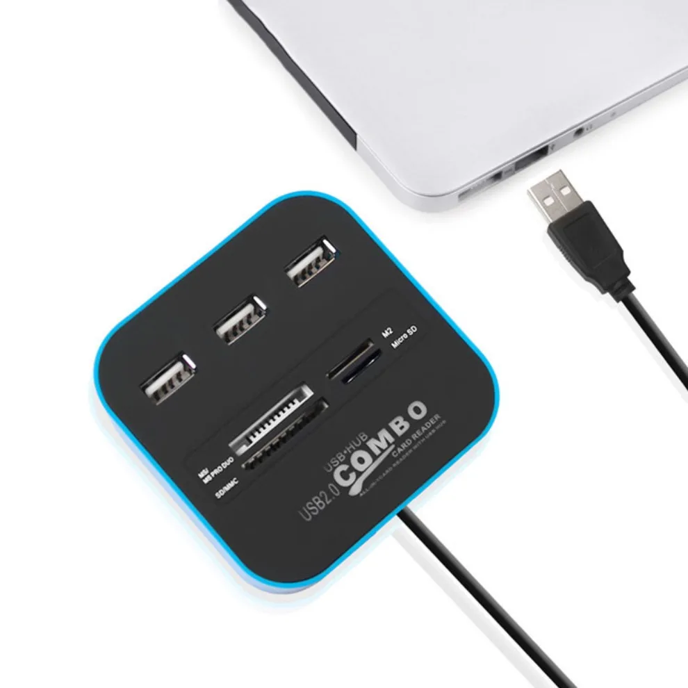 USB2.0 Hub USB Hub Combo lector de tarjetas lector de tarjetas todo en 1 con concentrador USB lector de tarjetas Micro SD adaptador USB de 3 puertos para PC portátil