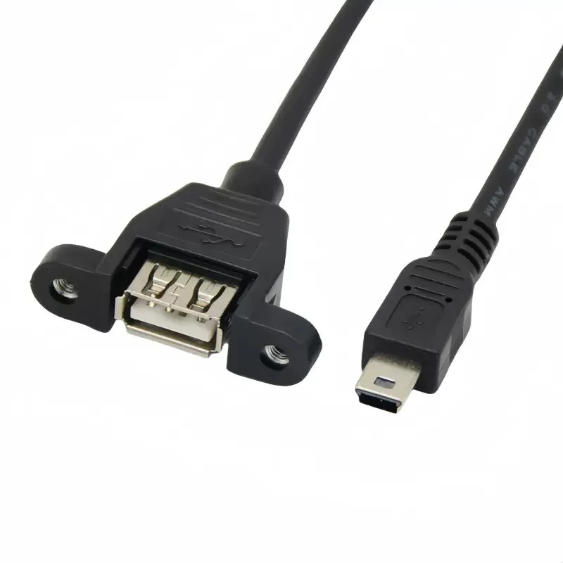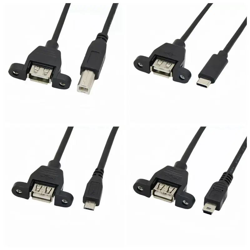 USB2.0 Impresión Mini 5P Micro 5p Tipo-c macho a USB2.0 A Cable de extensión hembra con orificio para tornillo de oreja Cable de datos 0,3 m 0,5 m
