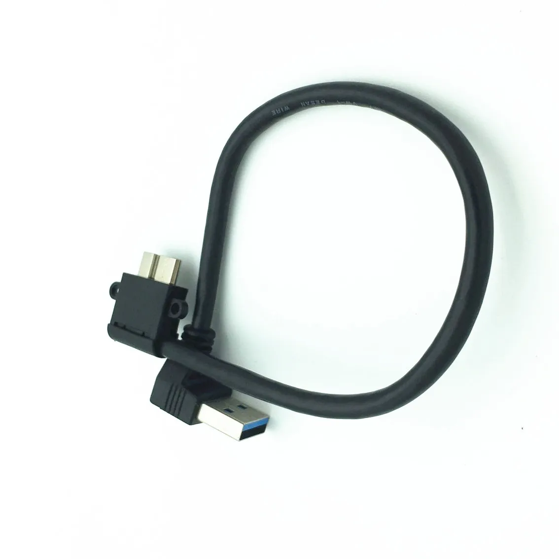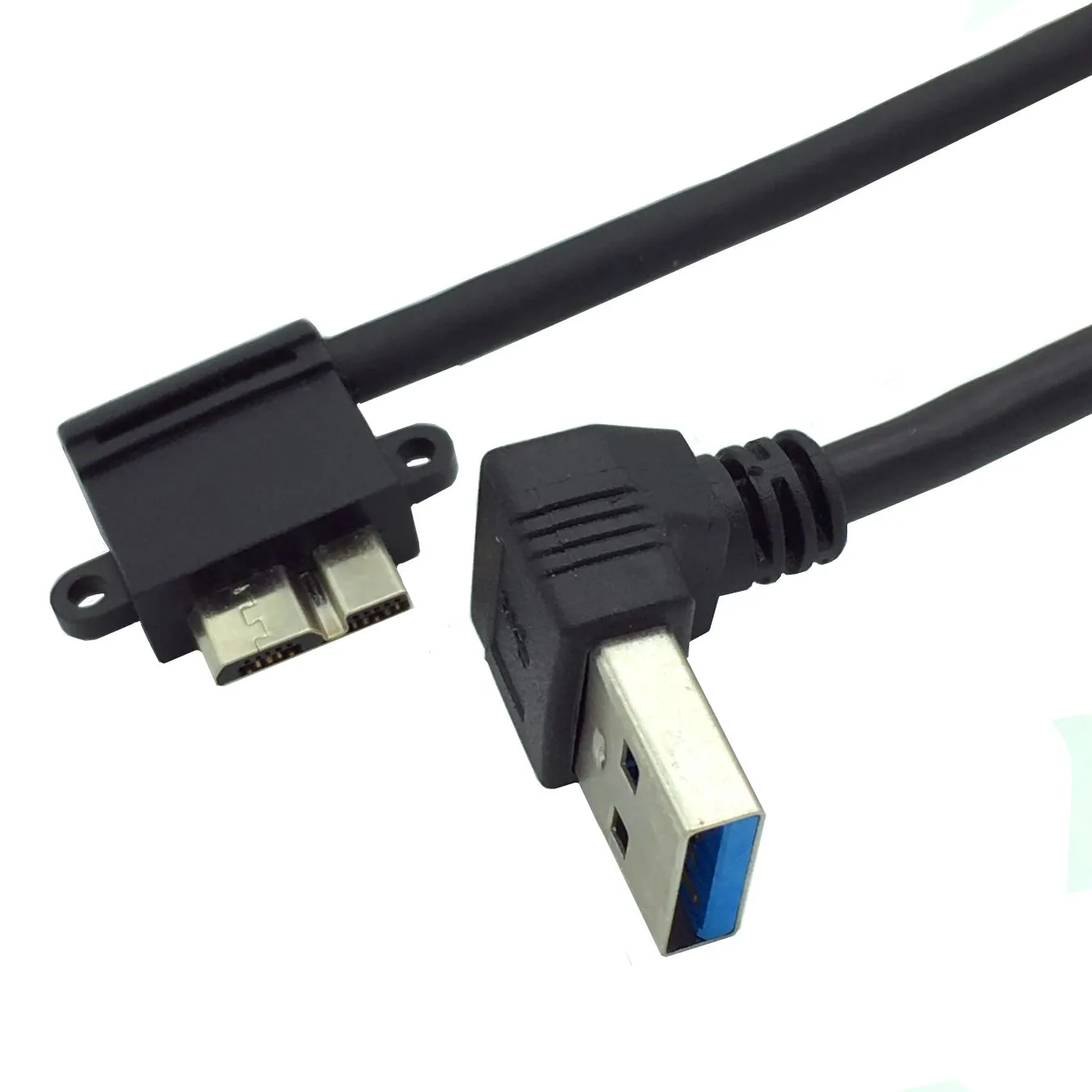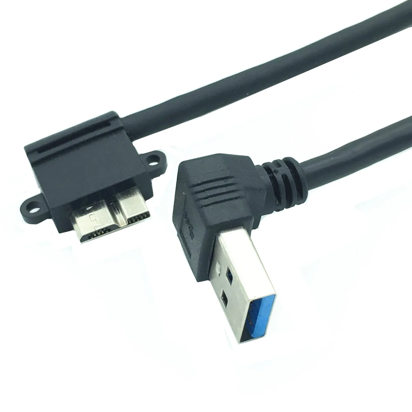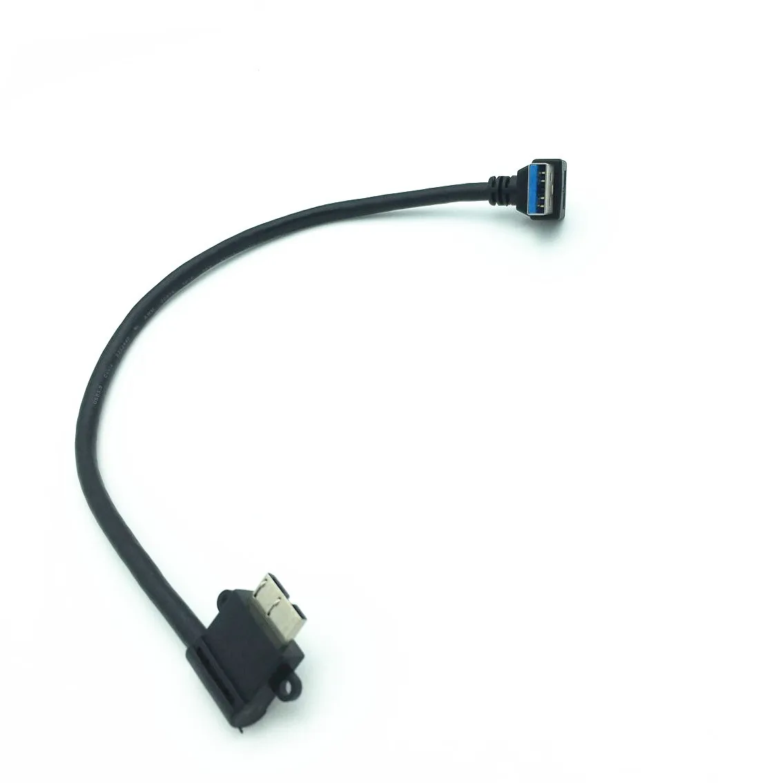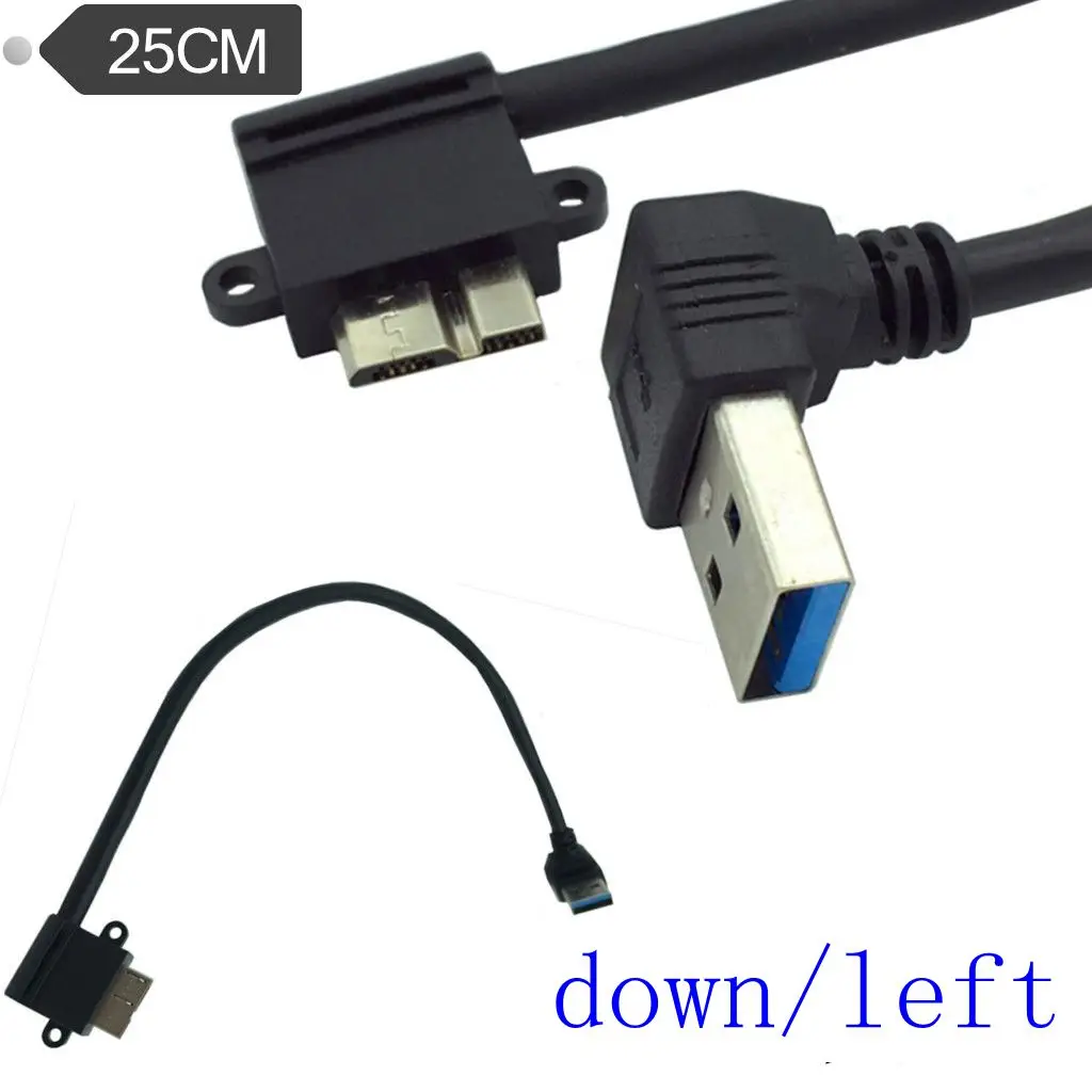 USB3.0 a MICRO BM con panel de bloqueo de tornillo USB3.0 A curva hacia abajo macho a micro curva izquierda 25cm