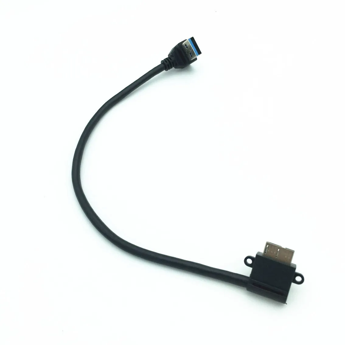 Comprar USB3.0 A MICRO BM con panel de bloqueo de tornillo USB3.0 A abajo curva macho A micro curva izquierda 25cm