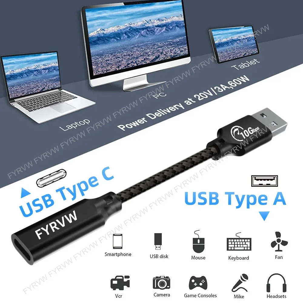 Adaptador USB C hembra a USB macho de 10 Gbps Adaptador de cable USB C a USB A OTG para iPad 2018, Samsung Galaxy Note 10 S22 S21 S20 Plus S20 + Ultra, Google Pixel