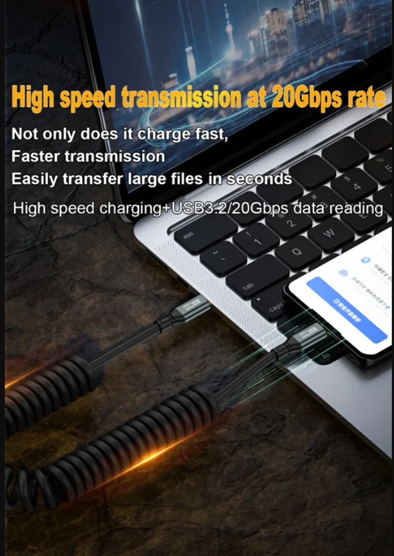 Comprar USB3.2 PD 100W GEN3 resorte USB tipo C Cable extensor para Samsung Xiaomi Huawei teléfono rápido iPhone15 cargador datos Wird
