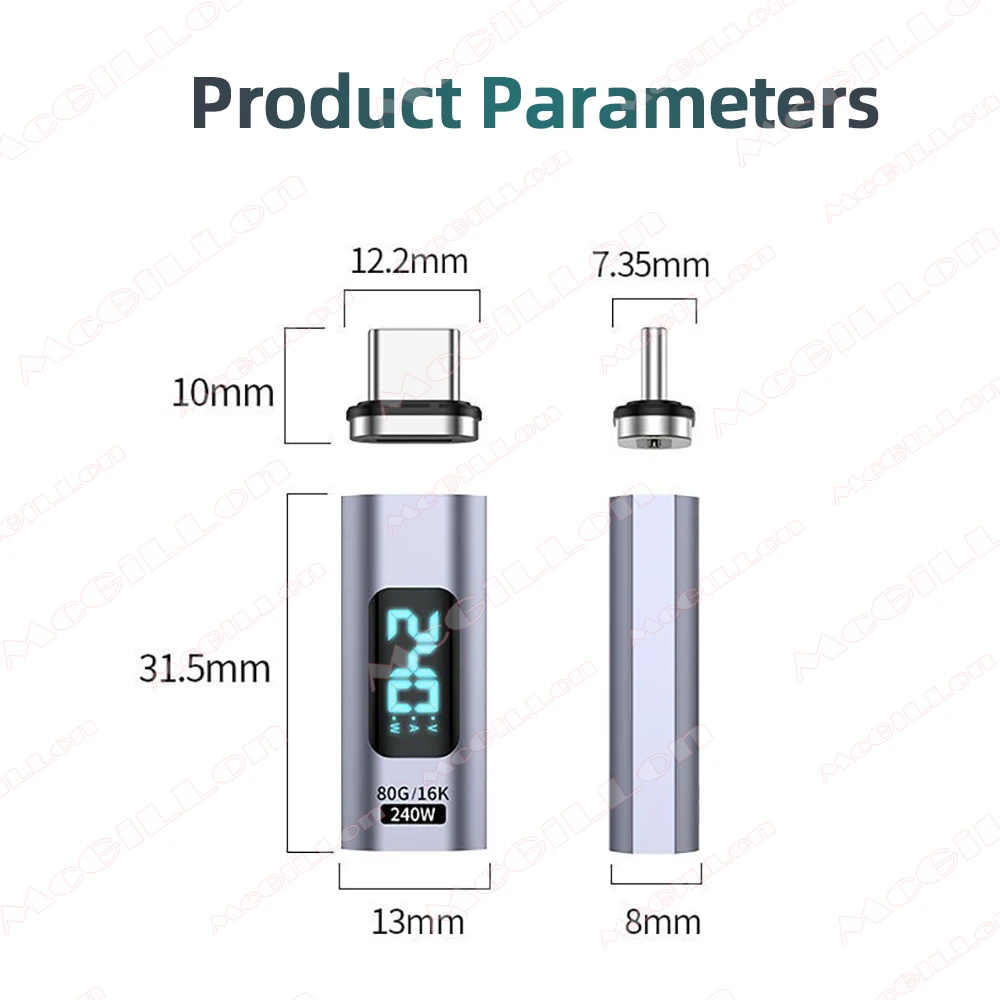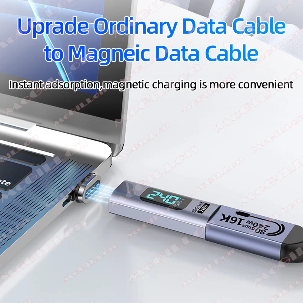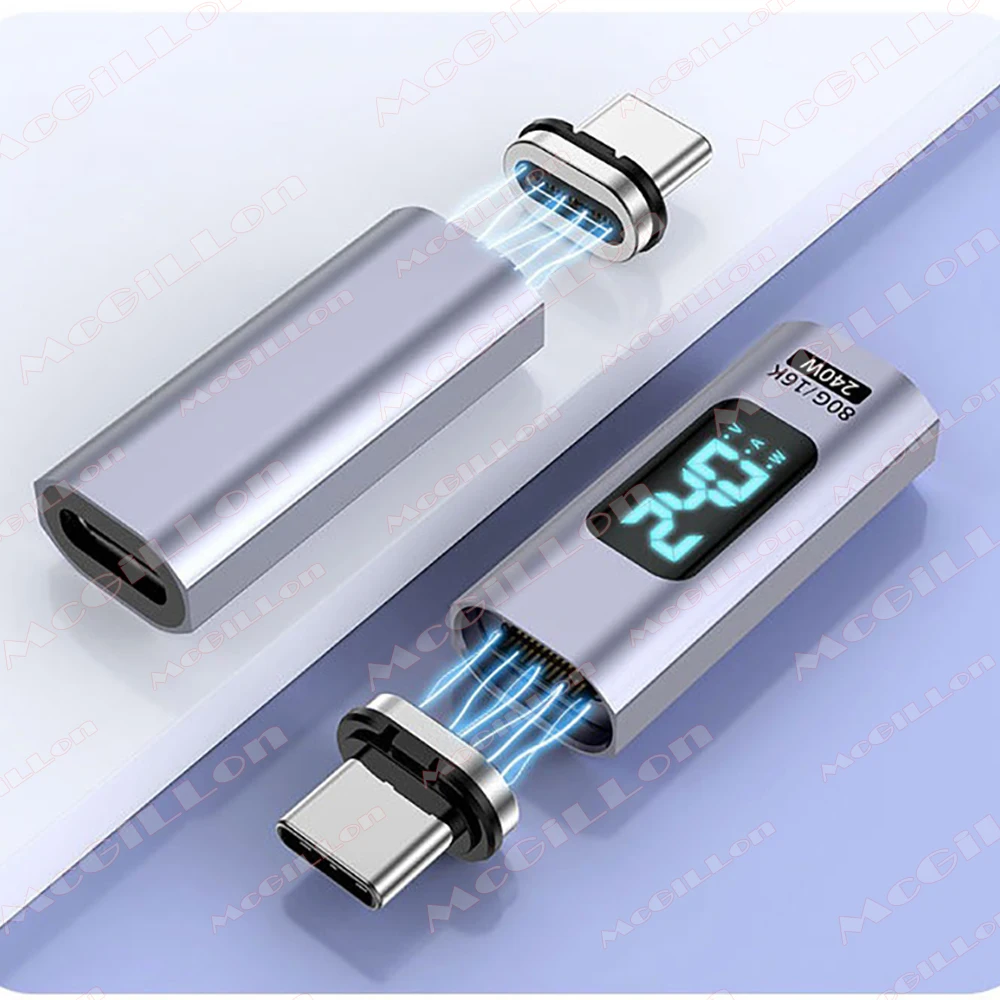 Este adaptador magnético Thunderbolt USB4 de 240W para tipo C a C es de alta calidad. También muestra el cargo total.