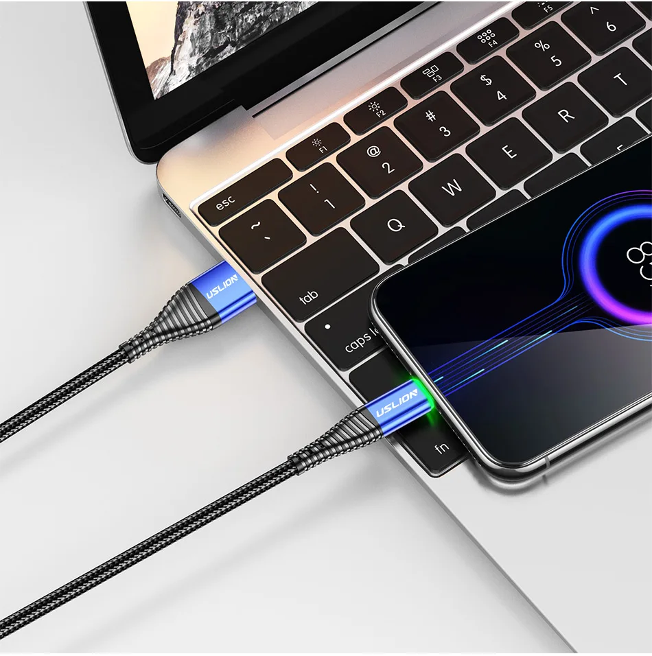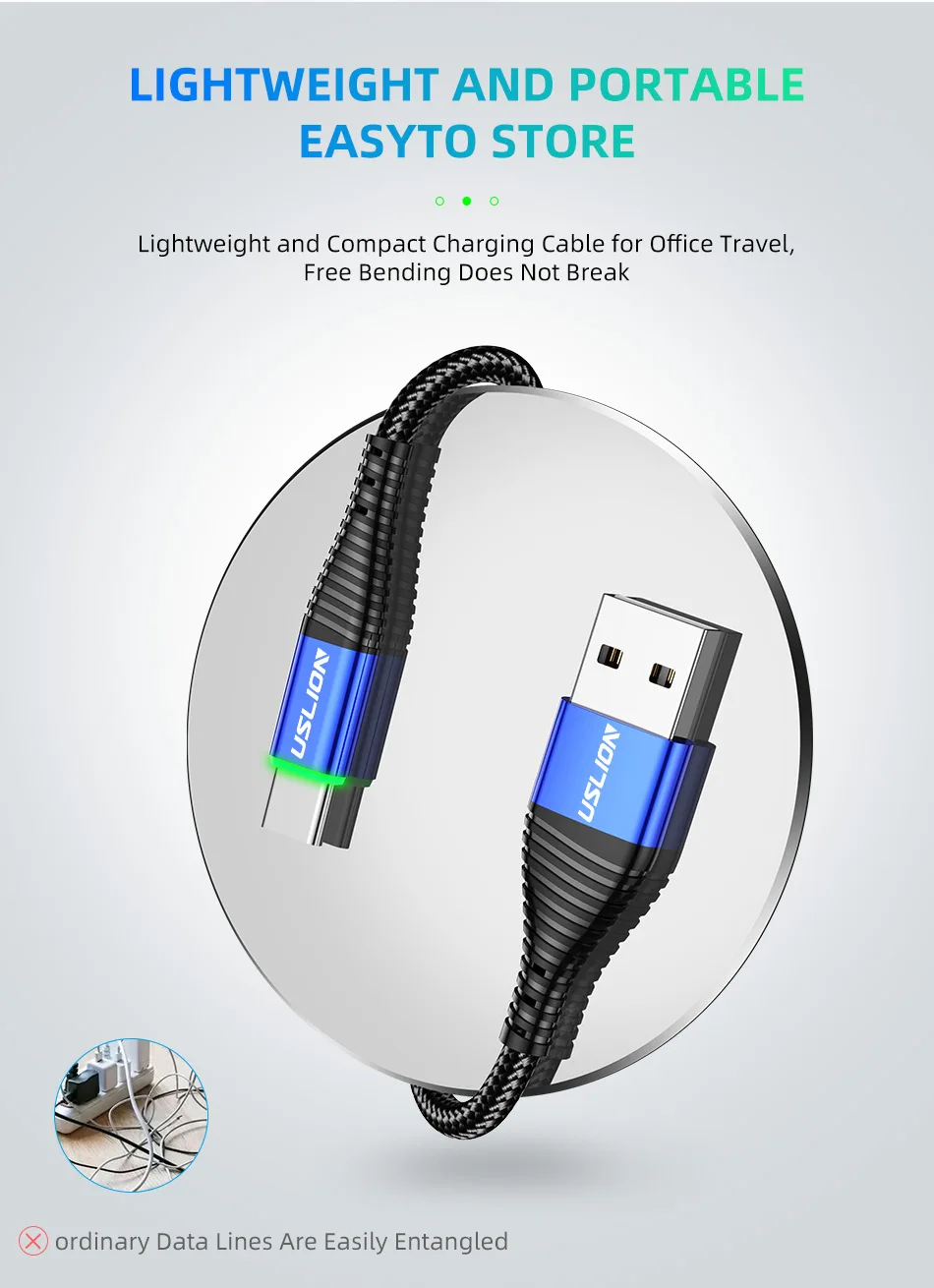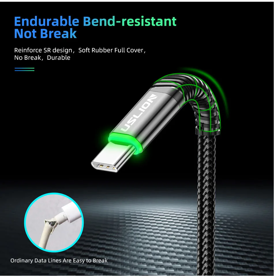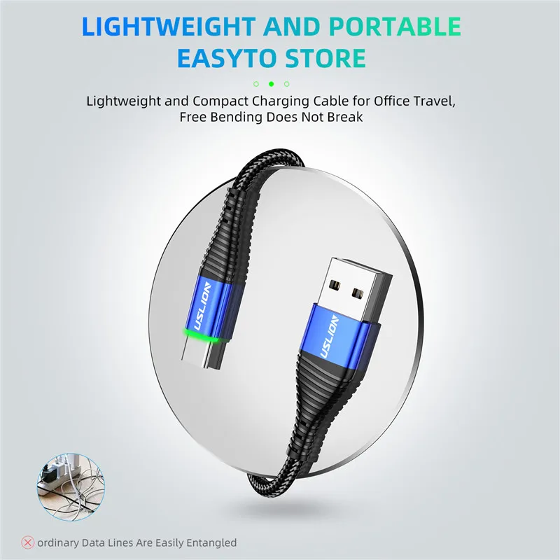 Comprar USLION 0,5 m/1m/2m LED 3A Cable USB tipo C Cable de carga rápida para Samsung Galaxy Xiaomi Huawei Note 7 Cable de datos USB-C Cable cargador