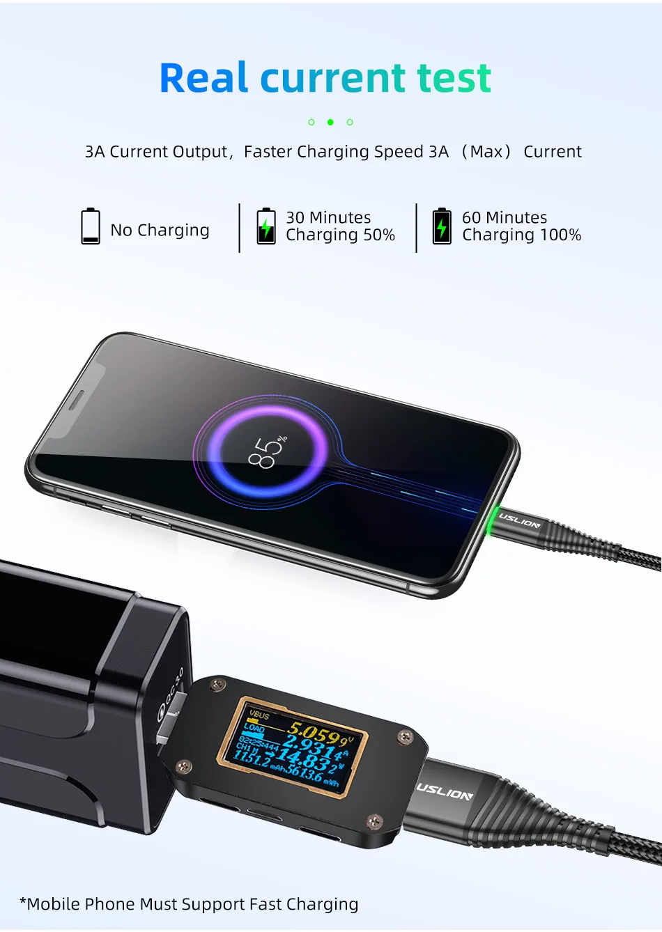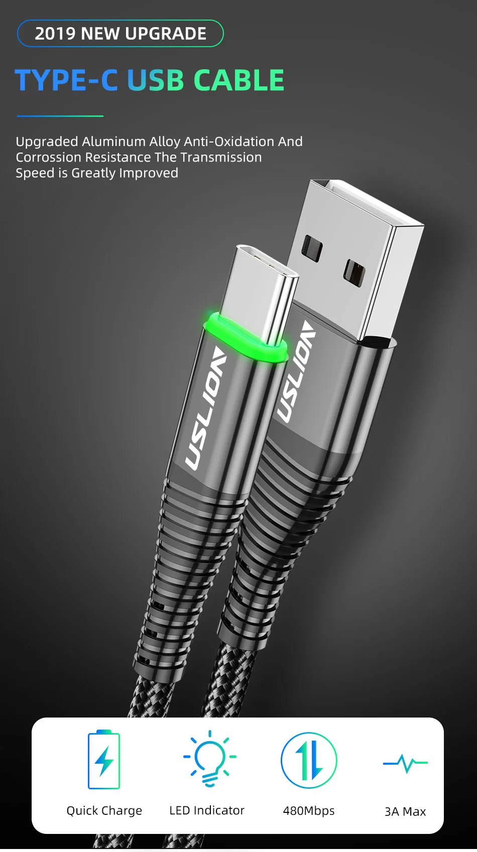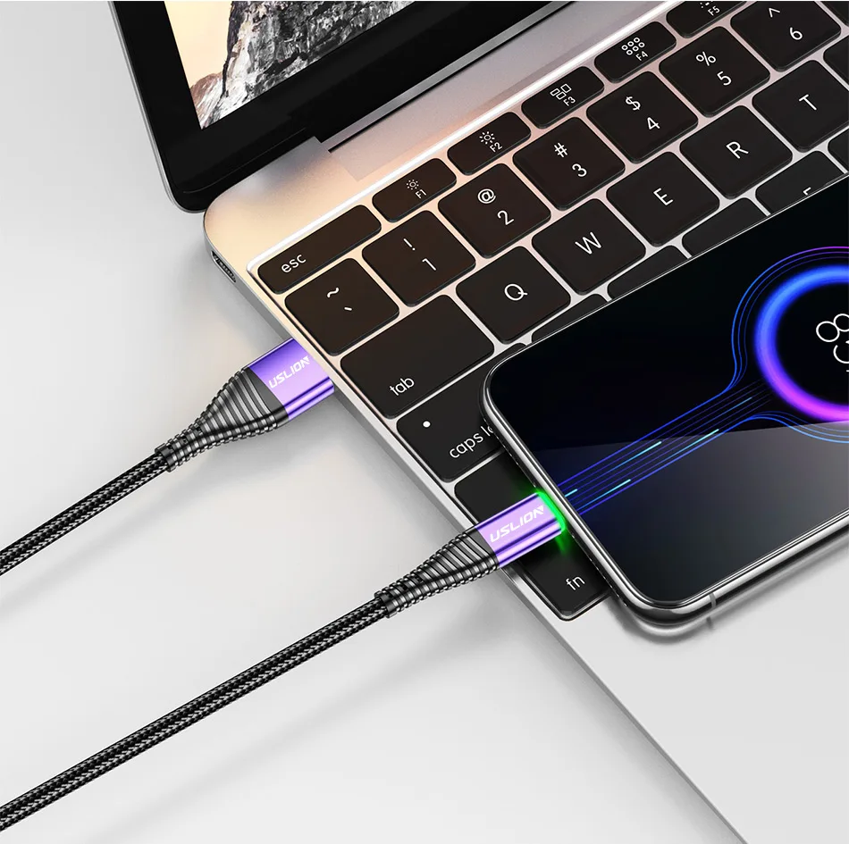 Comprar USLION 0,5 m/1m/2m LED 3A Cable USB tipo C Cable de carga rápida para Samsung Galaxy Xiaomi Huawei Note 7 Cable de datos USB-C Cable cargador
