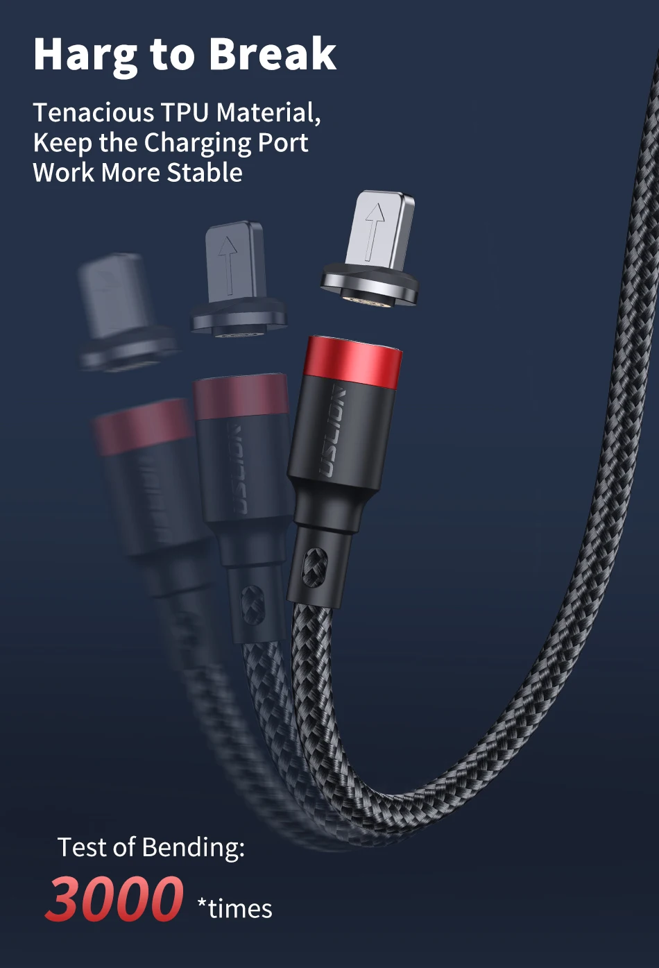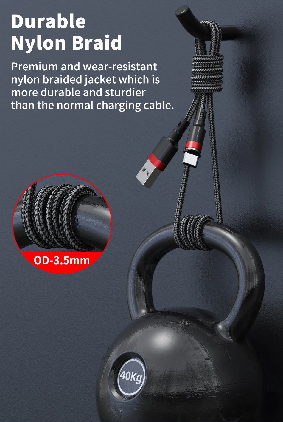 Puerto de Metal + alambre trenzado de nailon, hace que el producto sea duradero y resiste el kinkd y los enredos.