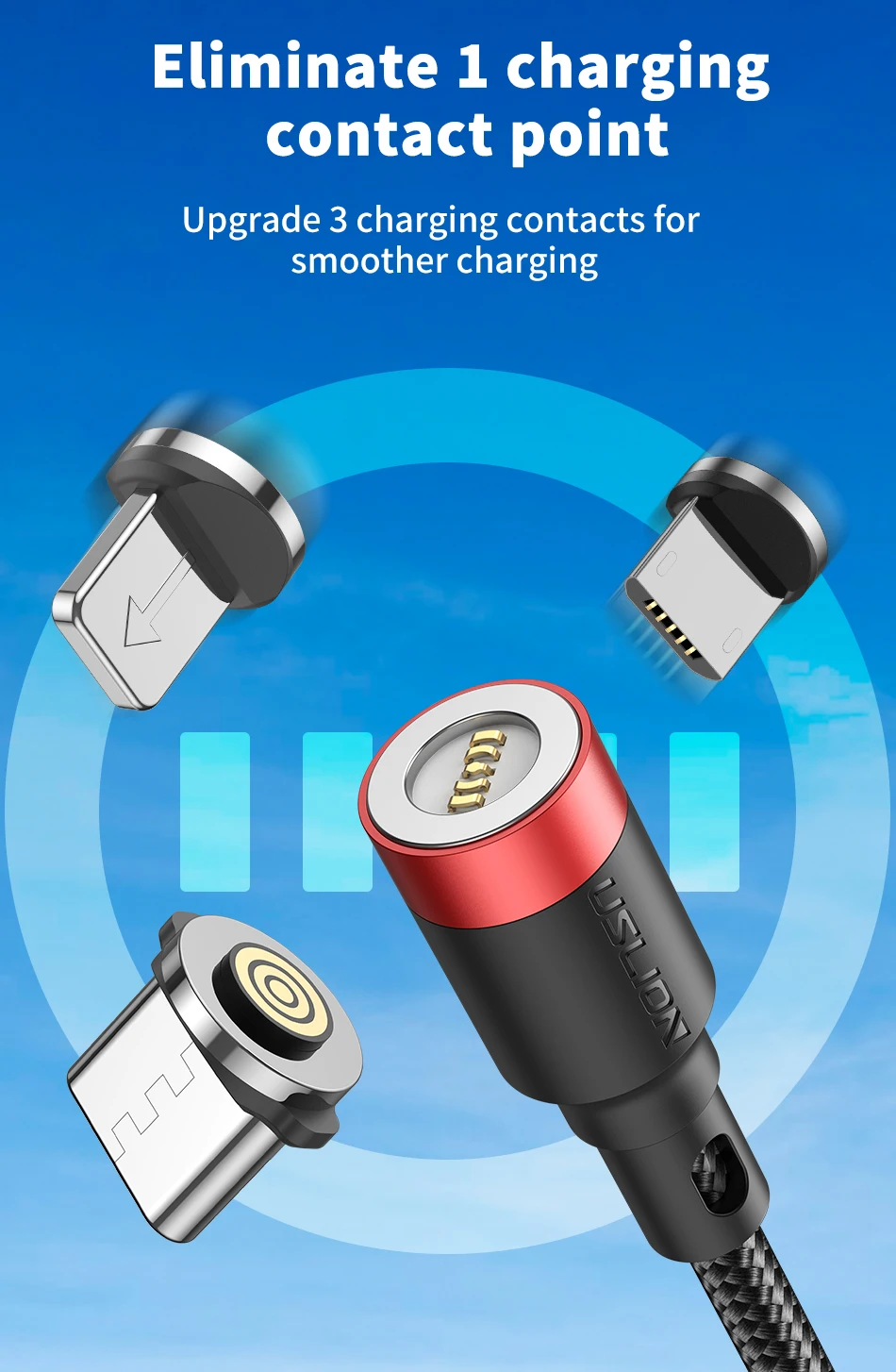 Comprar USLION 3A Cable magnético de carga rápida para iPhone 12 11 Xs Max XR Cable Micro USB tipo C Cable de 8 pines para Xiaomi Redmi 10 Huawei