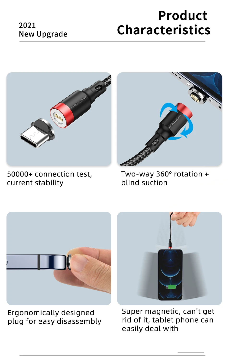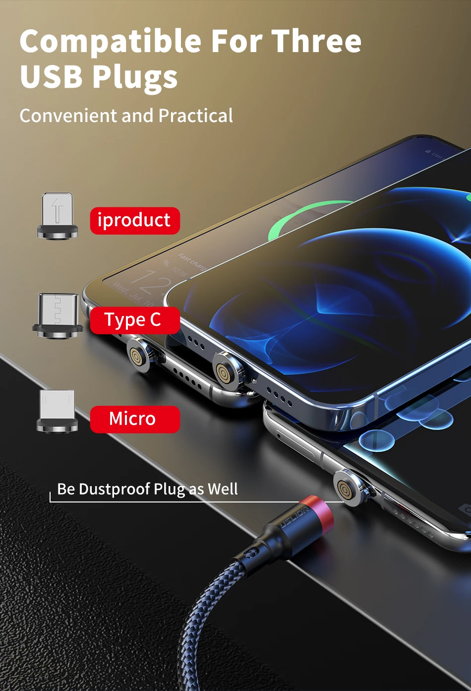 El conector magnético podría ser un enchufe a prueba de polvo y prolongar la vida útil de su dispositivo. Además, puede reducir el daño de su puerto USB al evitar enchufes y tirones frecuentes.