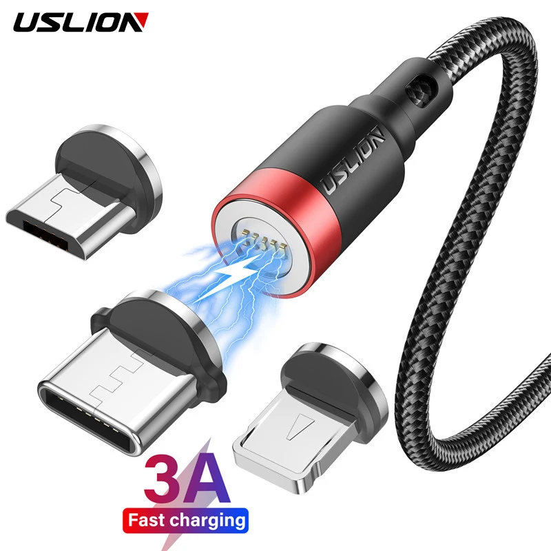 Comprar USLION 3A Cable magnético de carga rápida para iPhone 12 11 Xs Max XR Cable Micro USB tipo C Cable de 8 pines para Xiaomi Redmi 10 Huawei